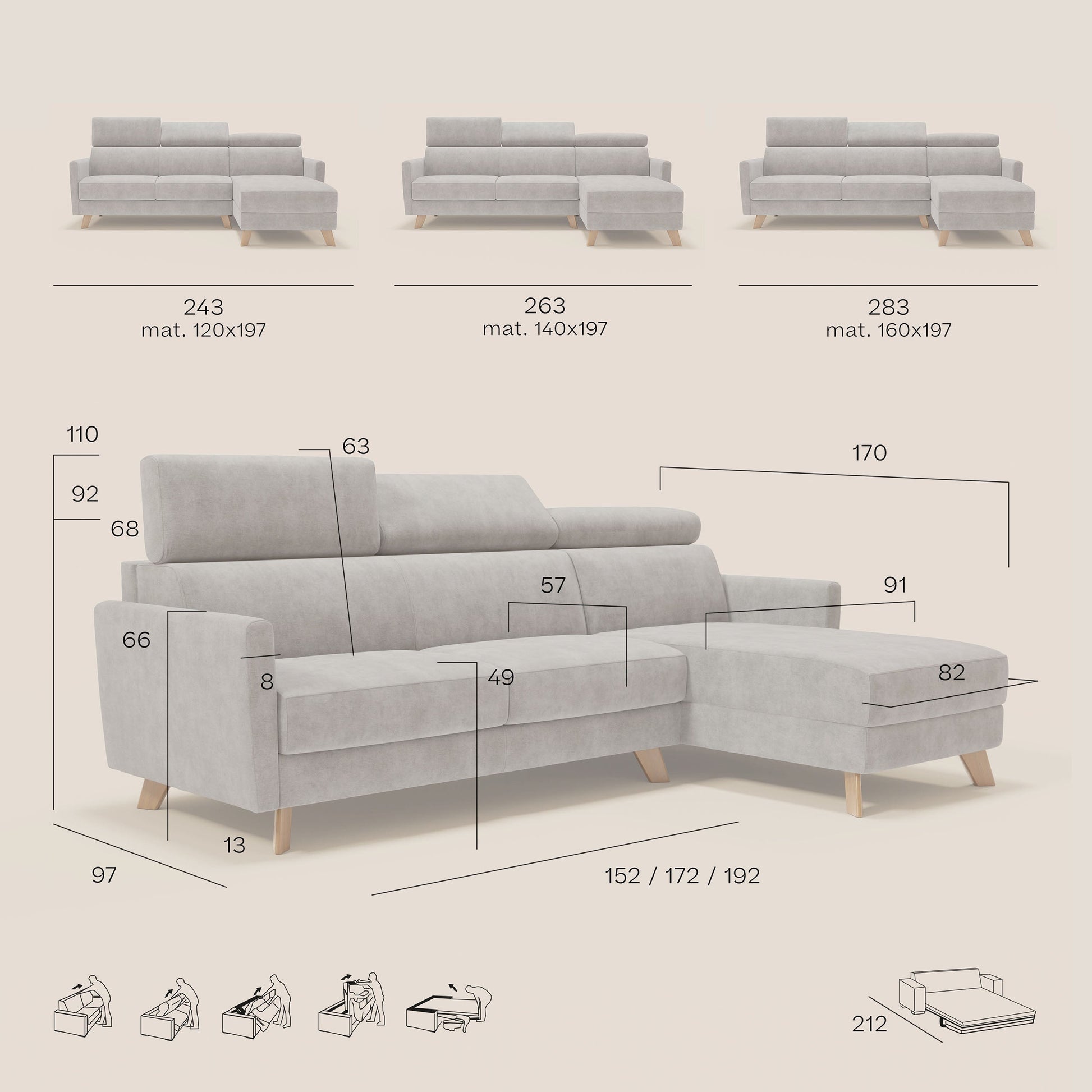 Francy divano letto angolare sfoderabile -...