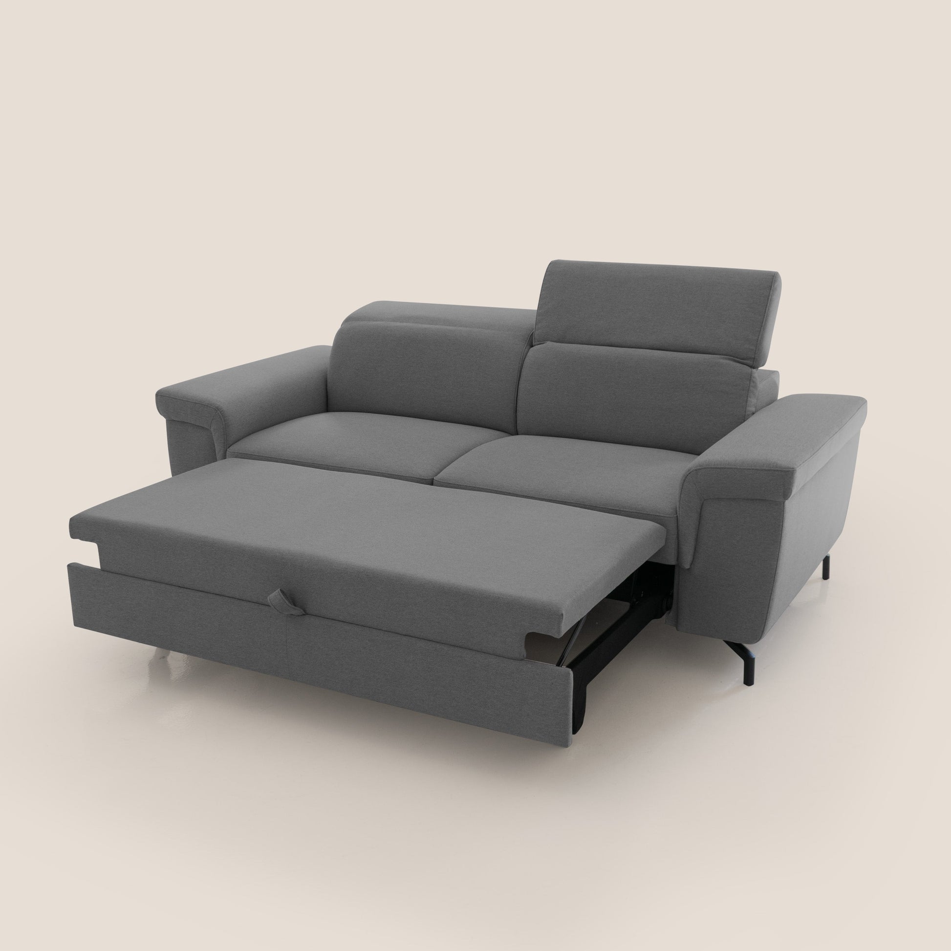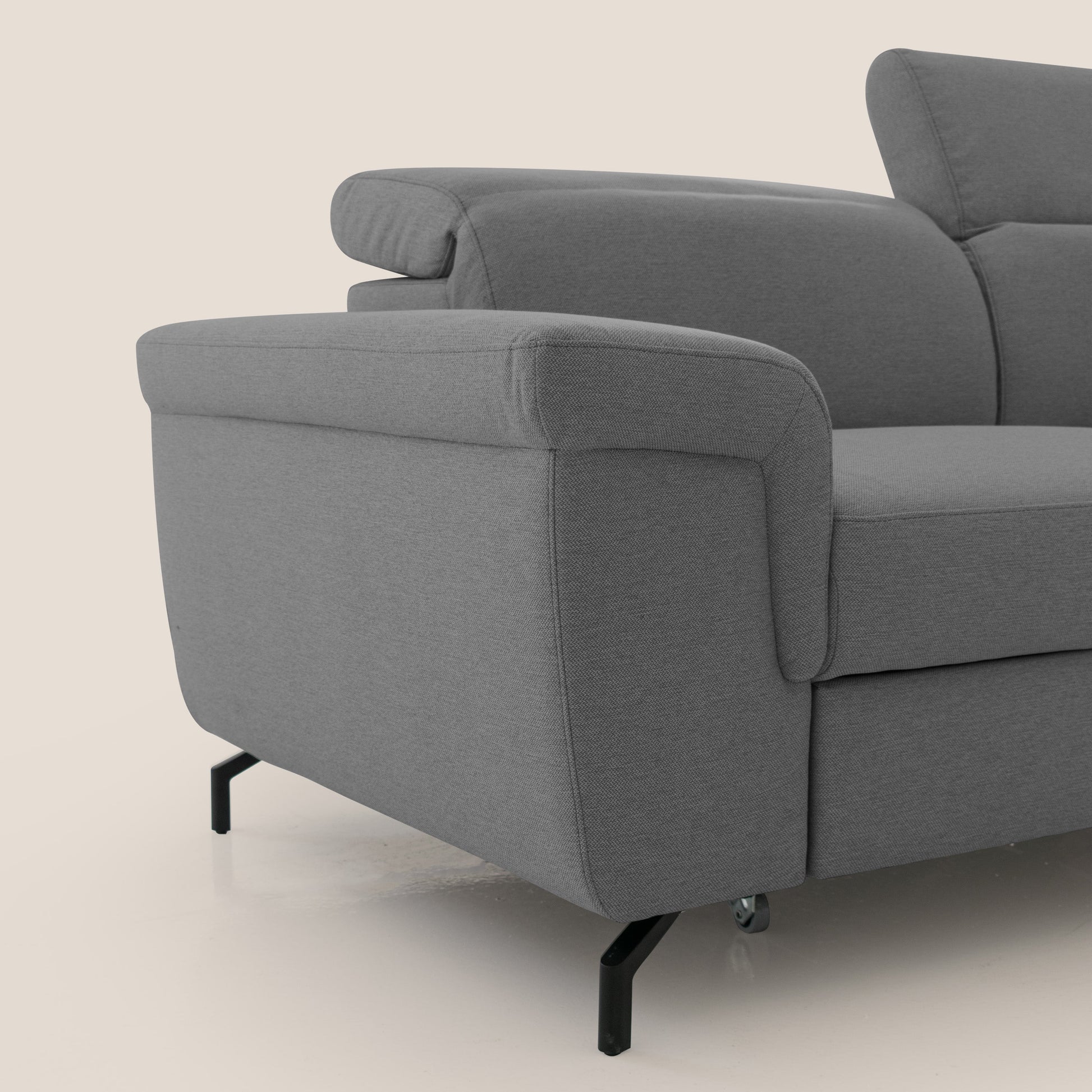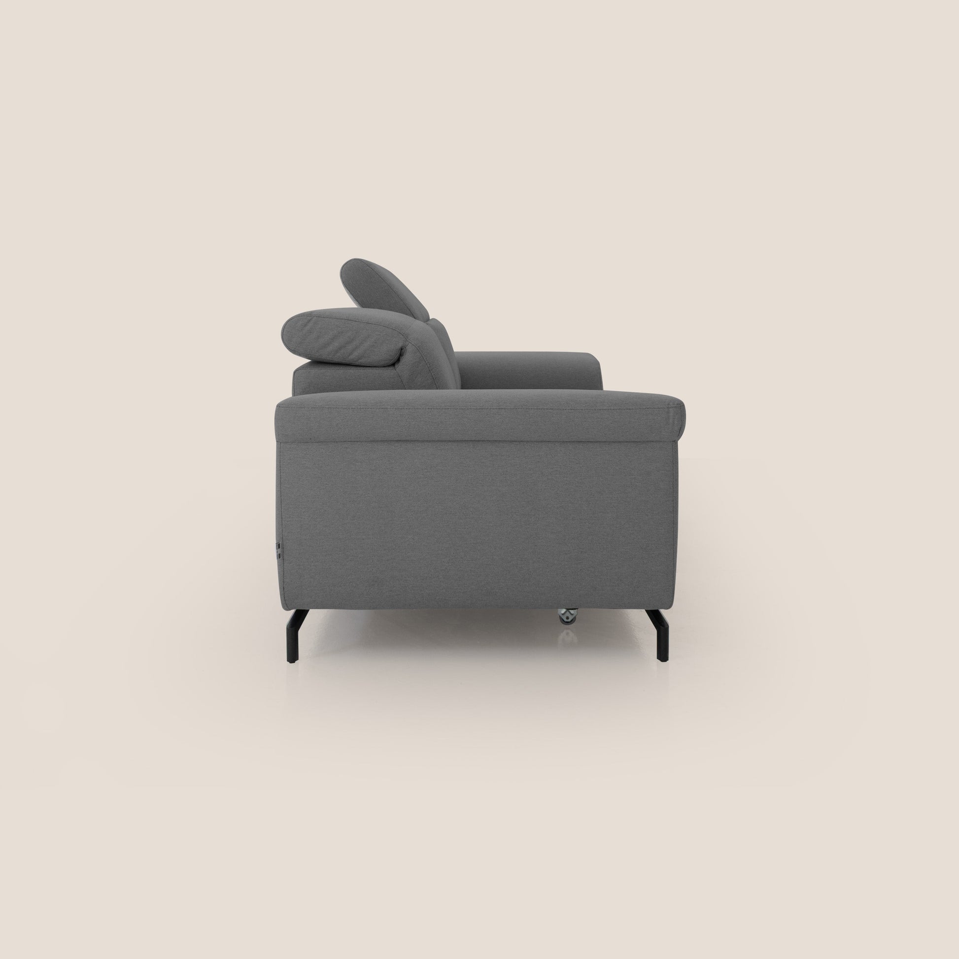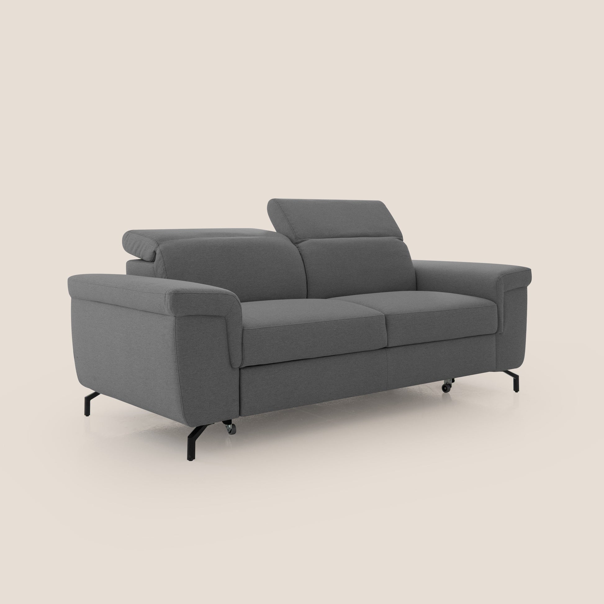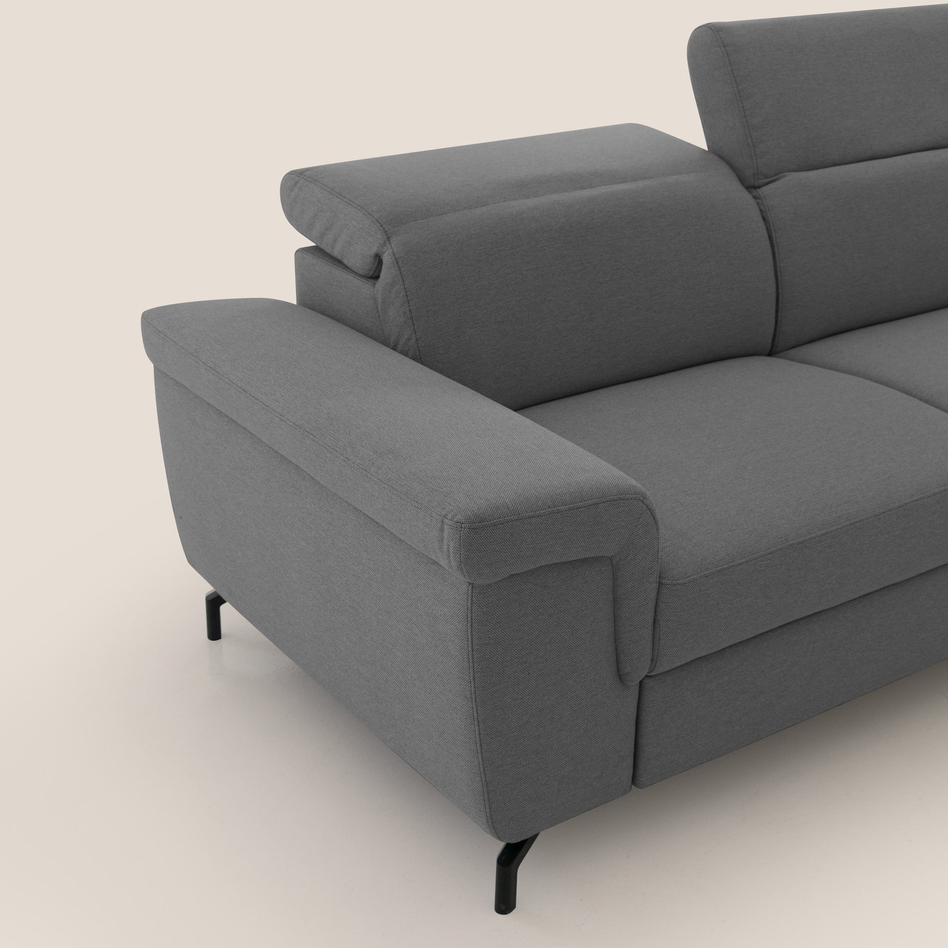 Aisha Divano con poggiapiedi estraibile piedini alti e poggiatesta reclinabili in tessuto Smacchiabile T05 antracite