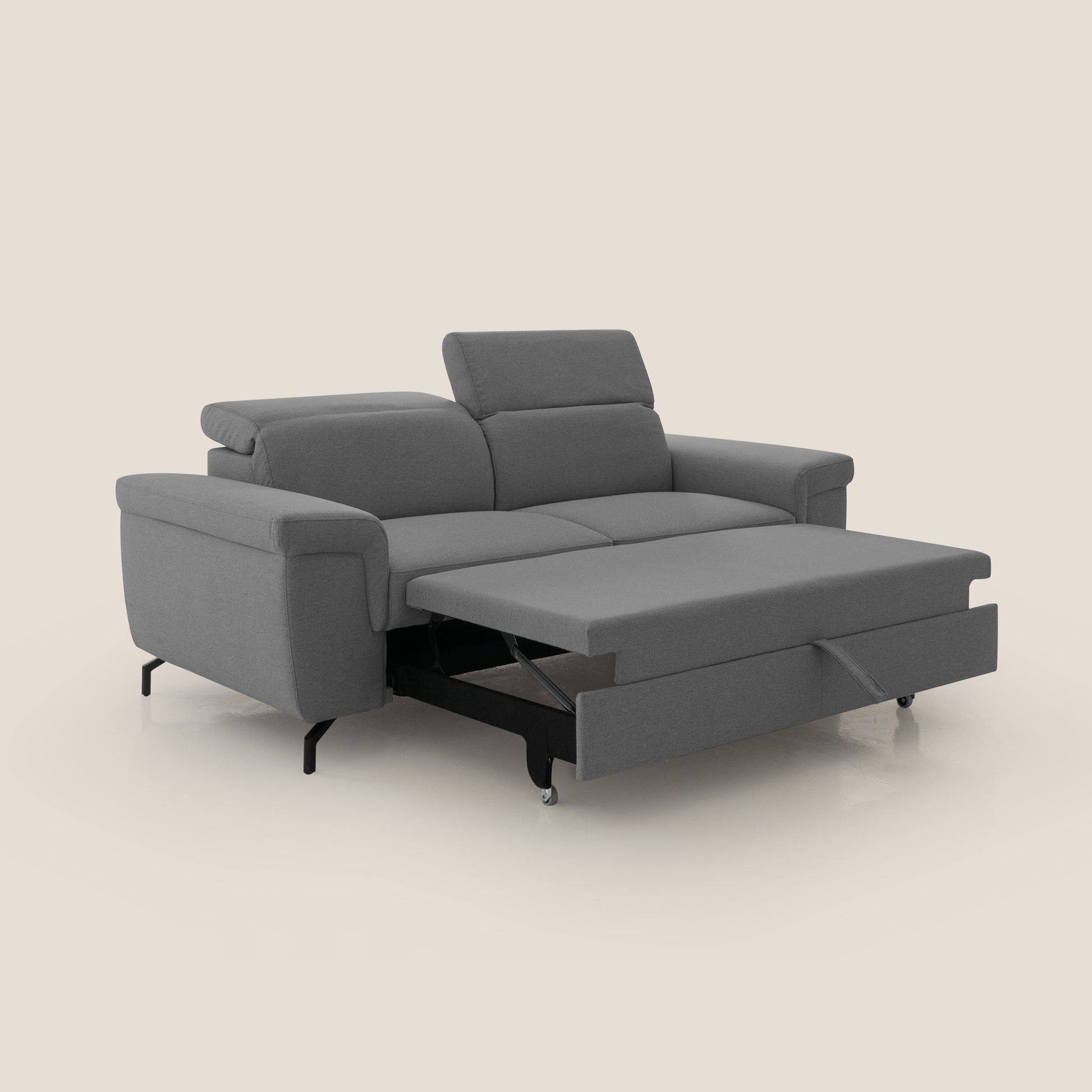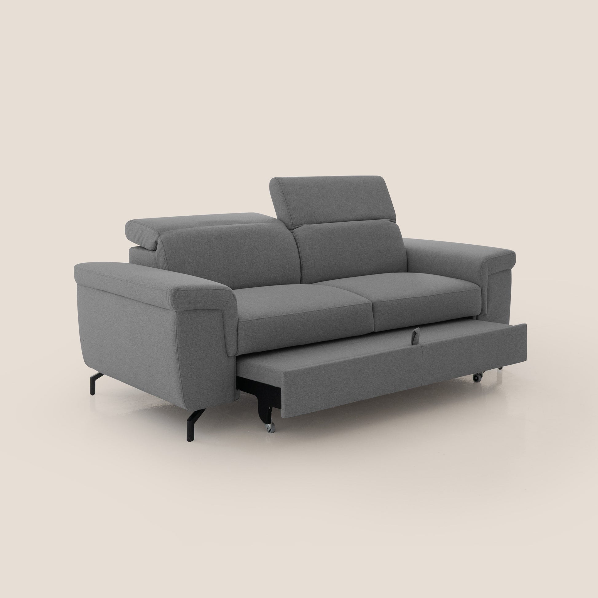 • Pouf estraibile con ruote gommate antigraffio : trasforma il divano in penisola per distendersi completamente