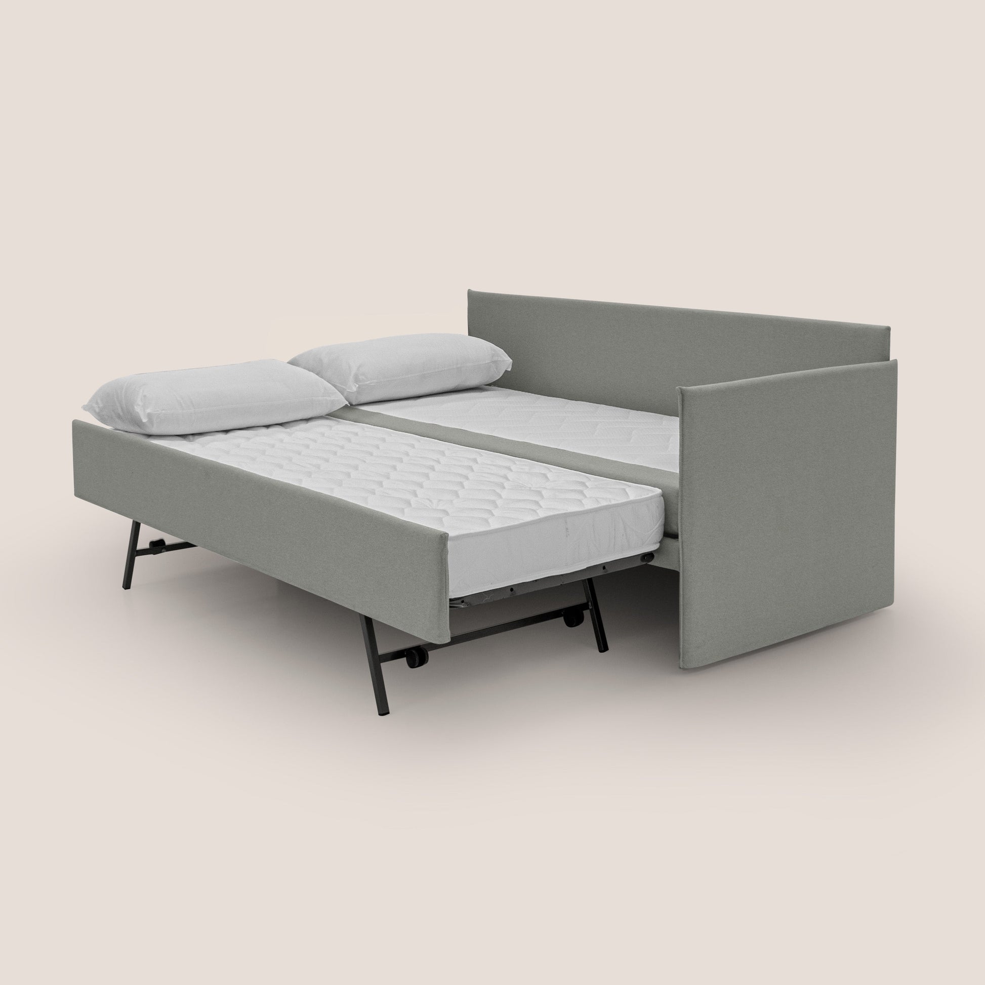 Divano letto doppio con 2 materassi singoli disponibili in diversi colori per adattarsi ad ogni esigenza di spazio e design. Divano letto 100% made in Italy.