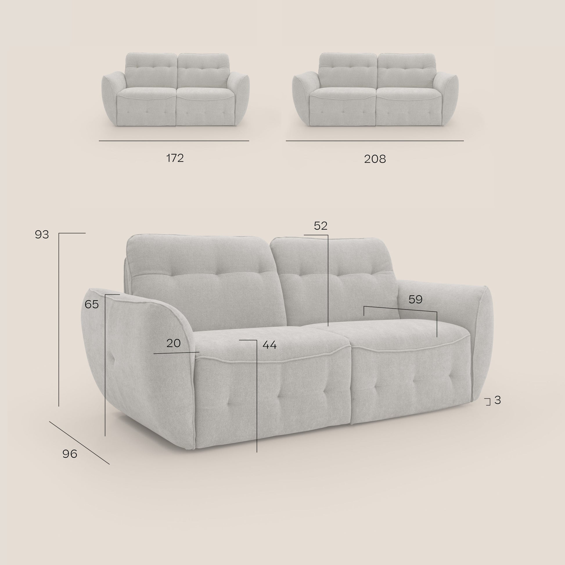La lavorazione ad impunture tipo capitonné sullo schienale, ripresa anche nella parte frontale sottoseduta, è delineata da una cucitura ad onda con cordoncino che segue tutto il profilo del modello, esaltando le morbide forme e la manifattura artigianale italiana . La silhouette arrotondata, i braccioli generosi e la morbida imbottitura , insieme all'alto schienale, garantiscono un comfort puro per il relax.