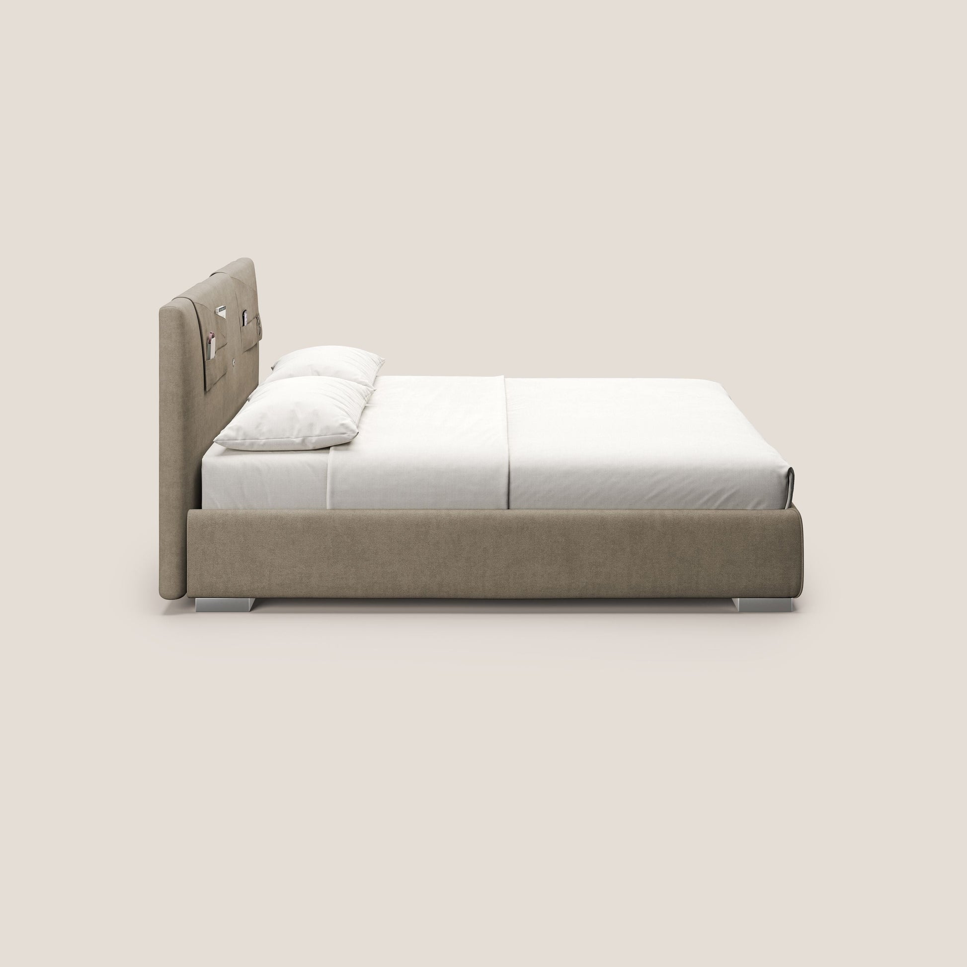 Horus letto imbottito contenitore e presa USB sulla testata in tessuto impermeabile T02 beige