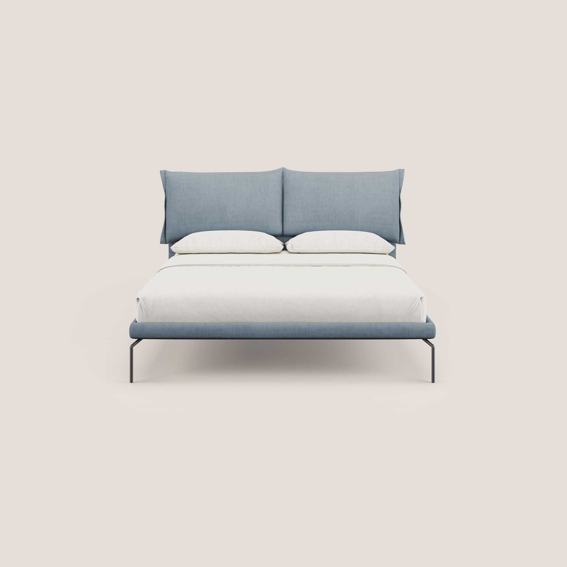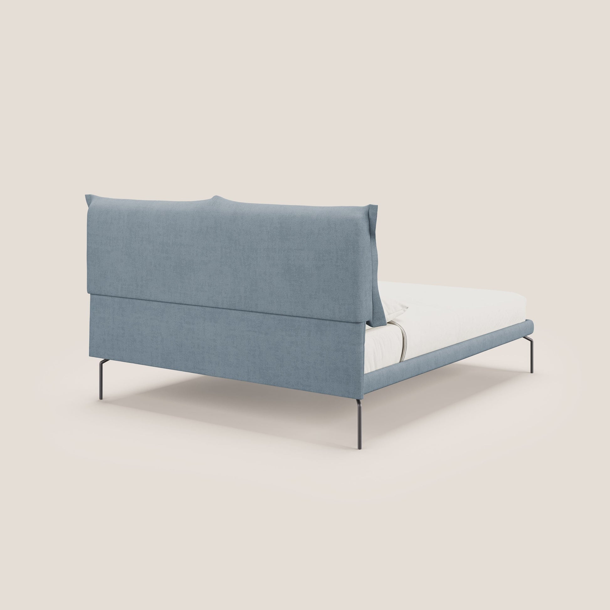 Bice letto imbottito con cuscini e piedi alti in metallo in tessuto impermeabile T02 carta da zucchero