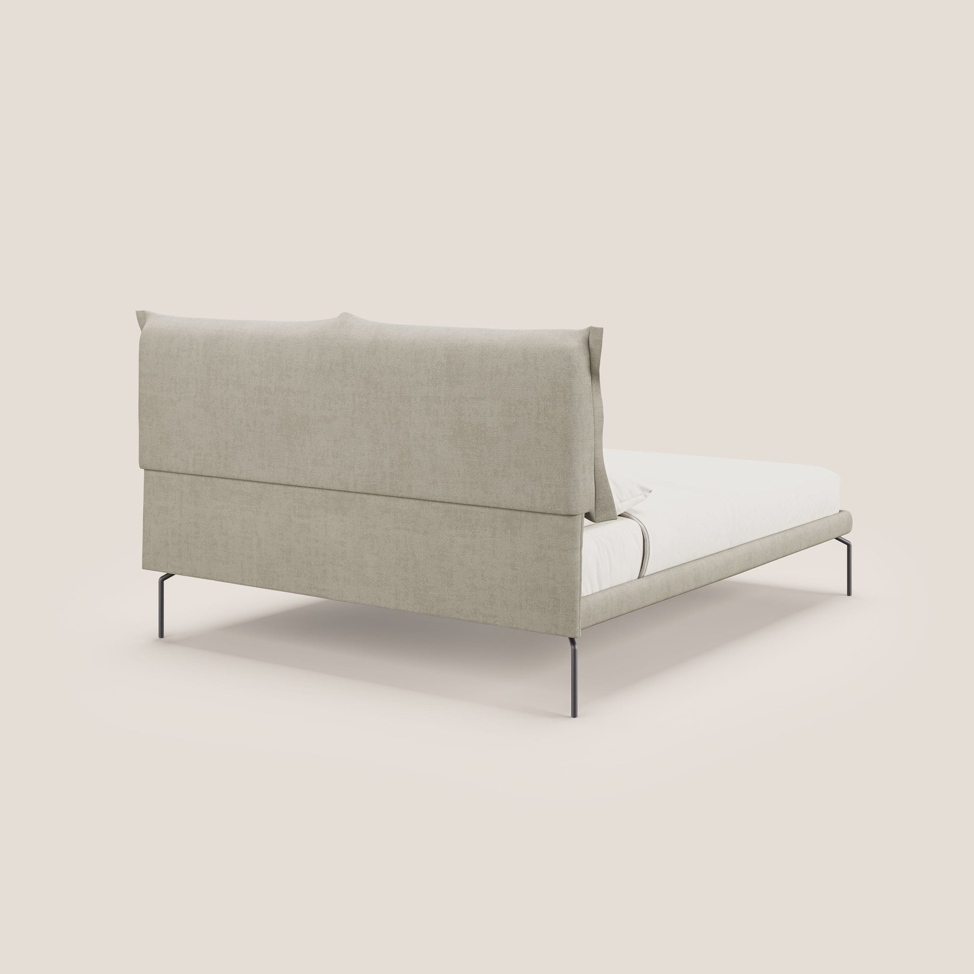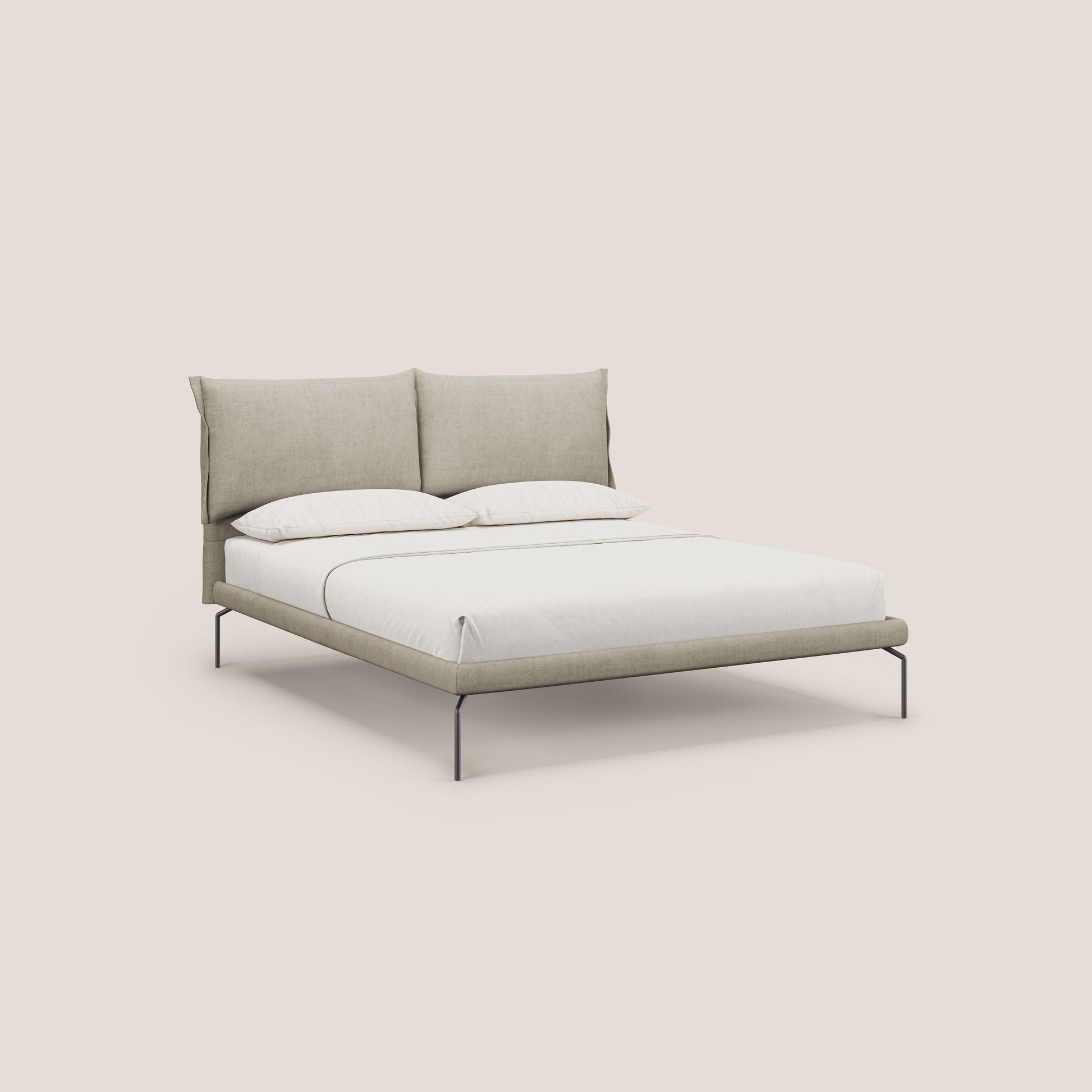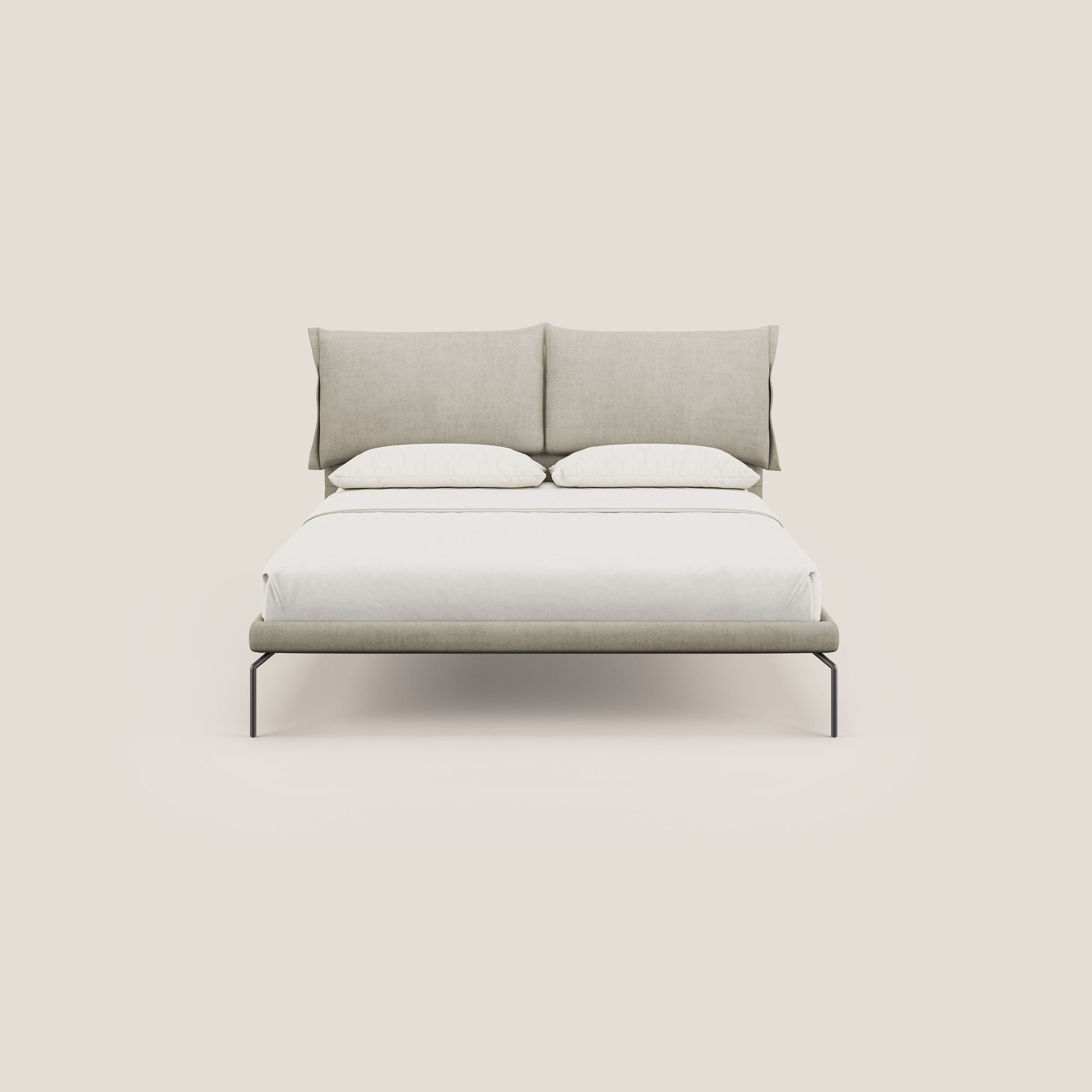 Bice letto imbottito con cuscini e piedi alti in metallo in tessuto impermeabile T02 panna