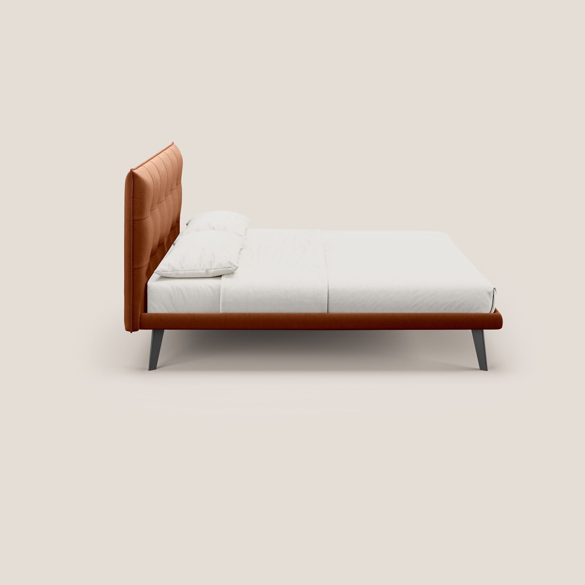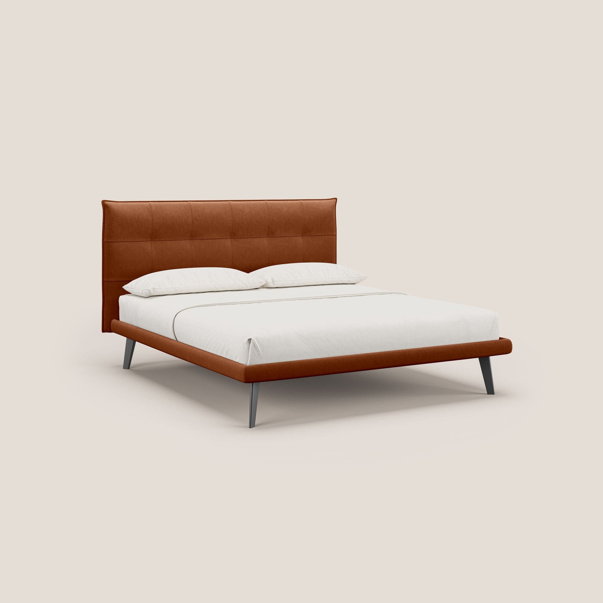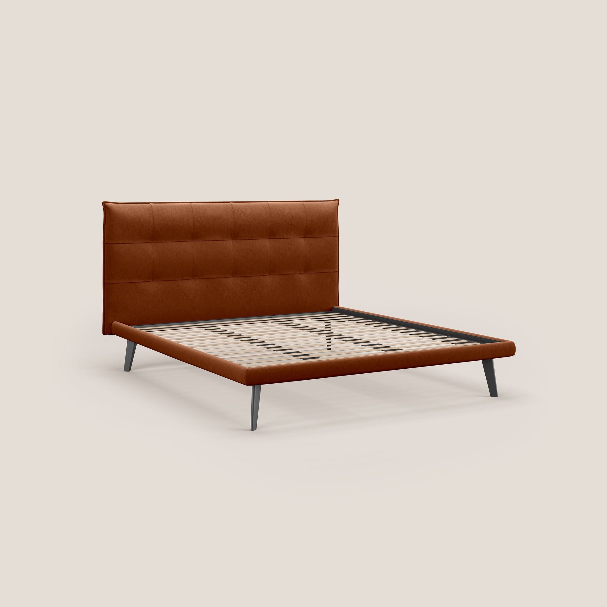 Brigitte letto con testata trapuntata piedi alti in mogano e tessuto impermeabile T09 ruggine