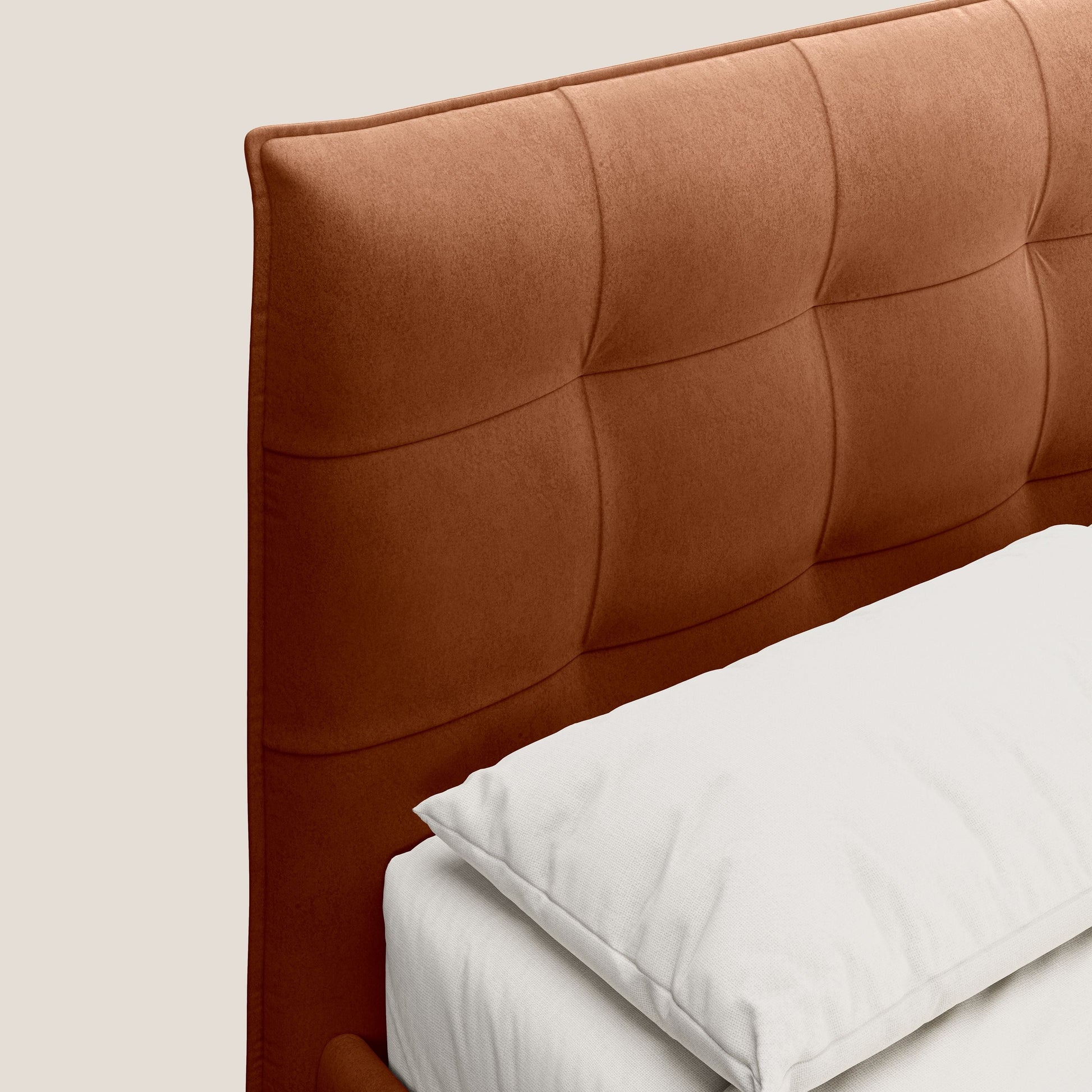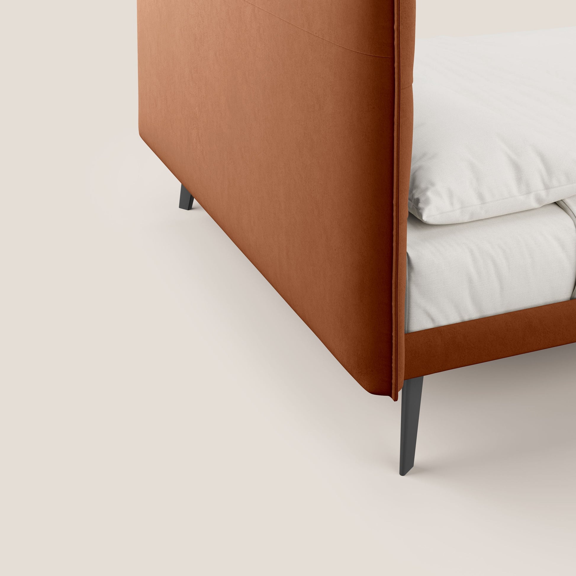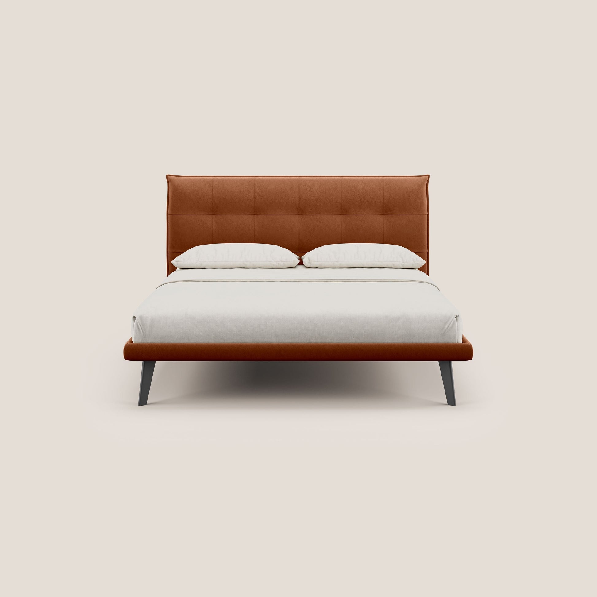 Brigitte letto con testata trapuntata piedi alti in mogano e tessuto impermeabile T09 ruggine