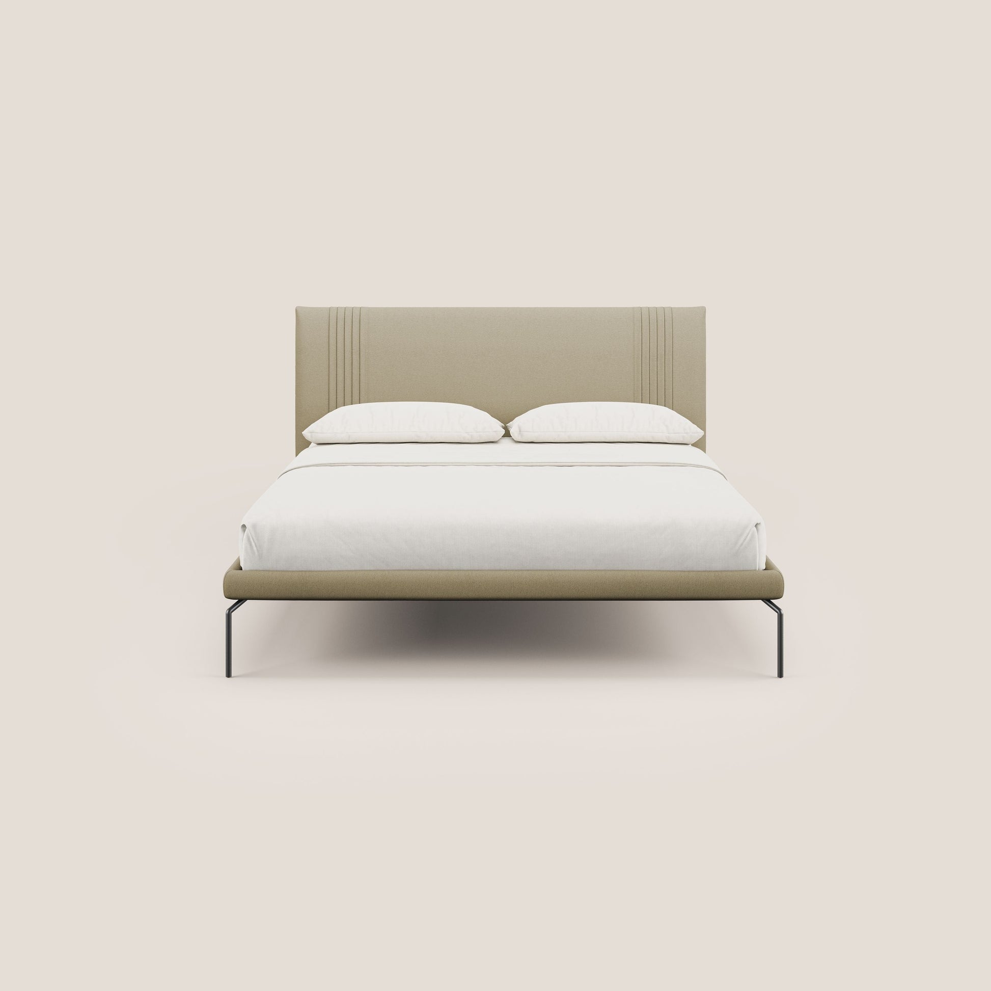 Finn letto imbottito con piedi alti in metallo in tessuto smacchiabile T05 cammello