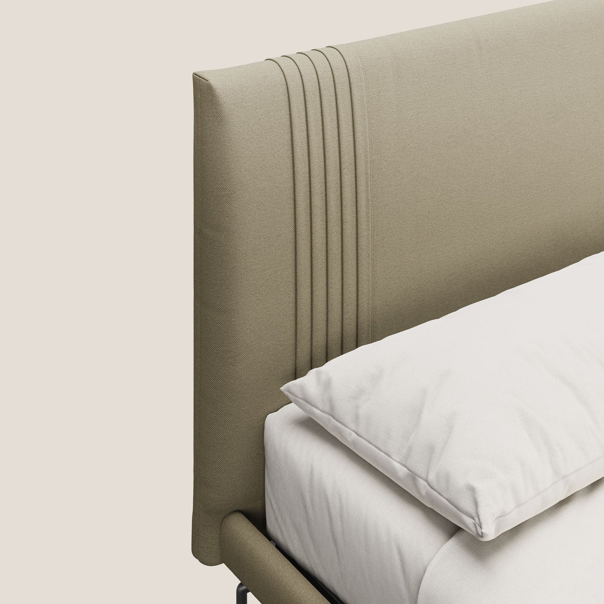 Scopri il Letto Imbottito FINN , l'incarnazione dell'eleganza femminile e del design attento ai dettagli. Con i suoi piedini alti 24 cm in Acciaio dark metal , questo letto non è solo un pezzo d'arredo, ma un vero e proprio gioiello di stile. Le plissettature raffinate esaltano la sua linea pulita e minimalista, mentre l'altezza dei piedini dona una sensazione di leggerezza e facilita la pulizia.