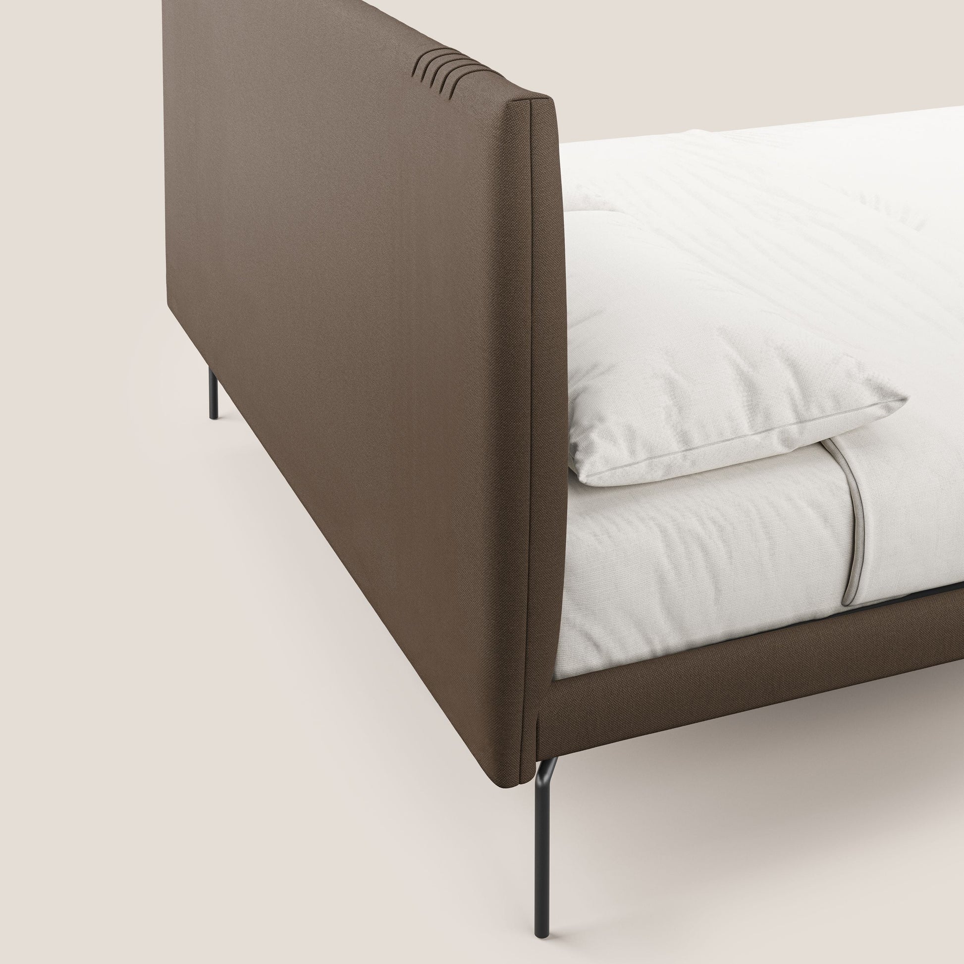 Finn letto imbottito con piedi alti in metallo...