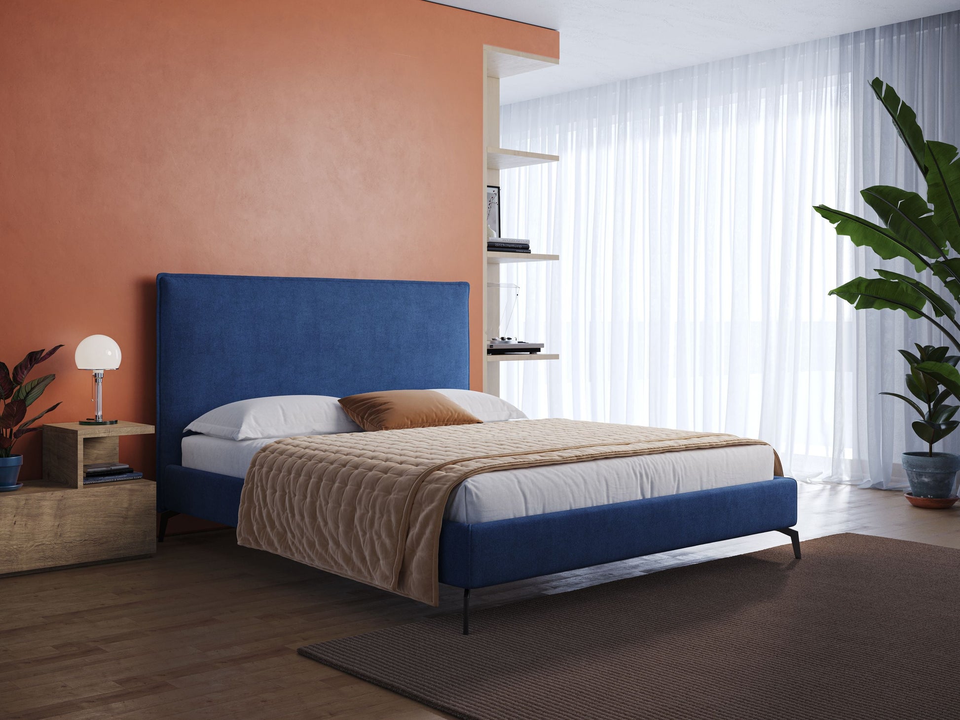 Iris letto imbottito con piedini neri...