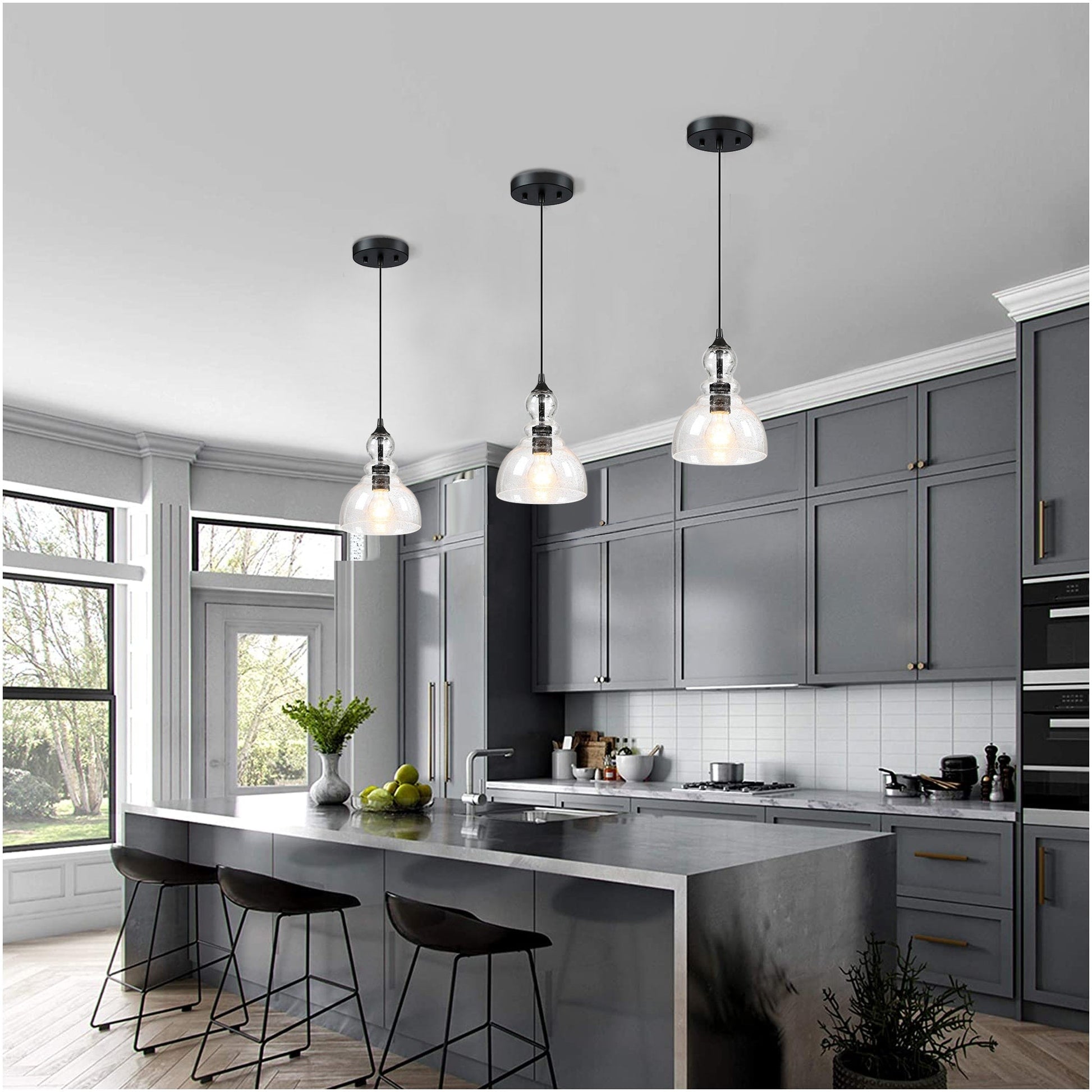 1-Light Kitchen Island Teardrop Seeded Glass Pendant with...