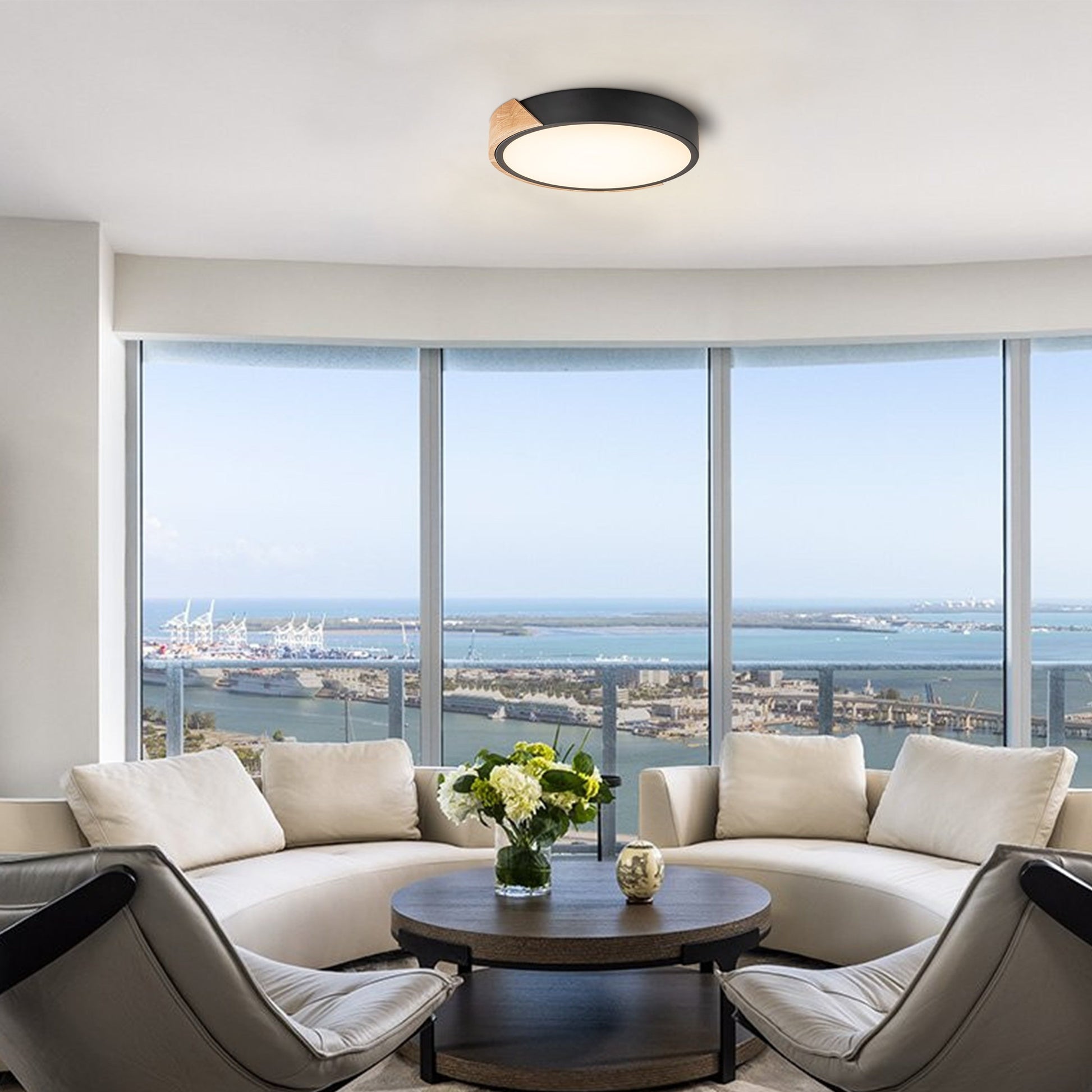 • Stylish design: Crafted of metal and acrylic, this round LED light features a simple thin-drum shape covered by a wooden half-ring. Integrated LED module(included) that brings plenty of highly efficient task lighting to your interior.