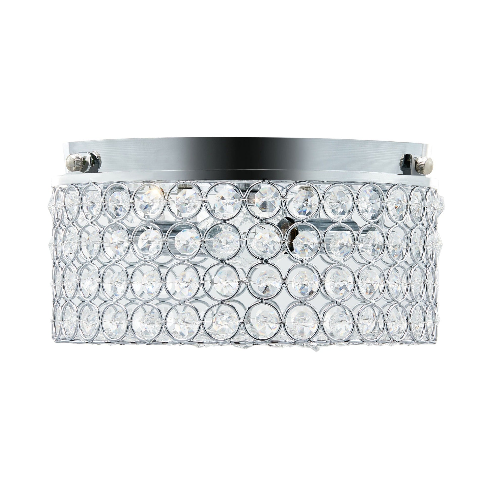 Add a touch of elegance to any room with the CO-Z Modern 2-Light Round Crystal Flush Mount Ceiling Light in Chrome. The clear crystal beads and chrome finish provide a luxurious shine that is perfect for dressing up any space. With the ability to use CFL, incandescent, or LED bulbs up to 40W, you can easily control the brightness and intensity of the light using a compatible dimmer switch. The drum shade is designed to enhance any room with any height ceiling without compromising space. This light fixture is durable and corrosion-proof, making it perfect for any home or office renovation project.