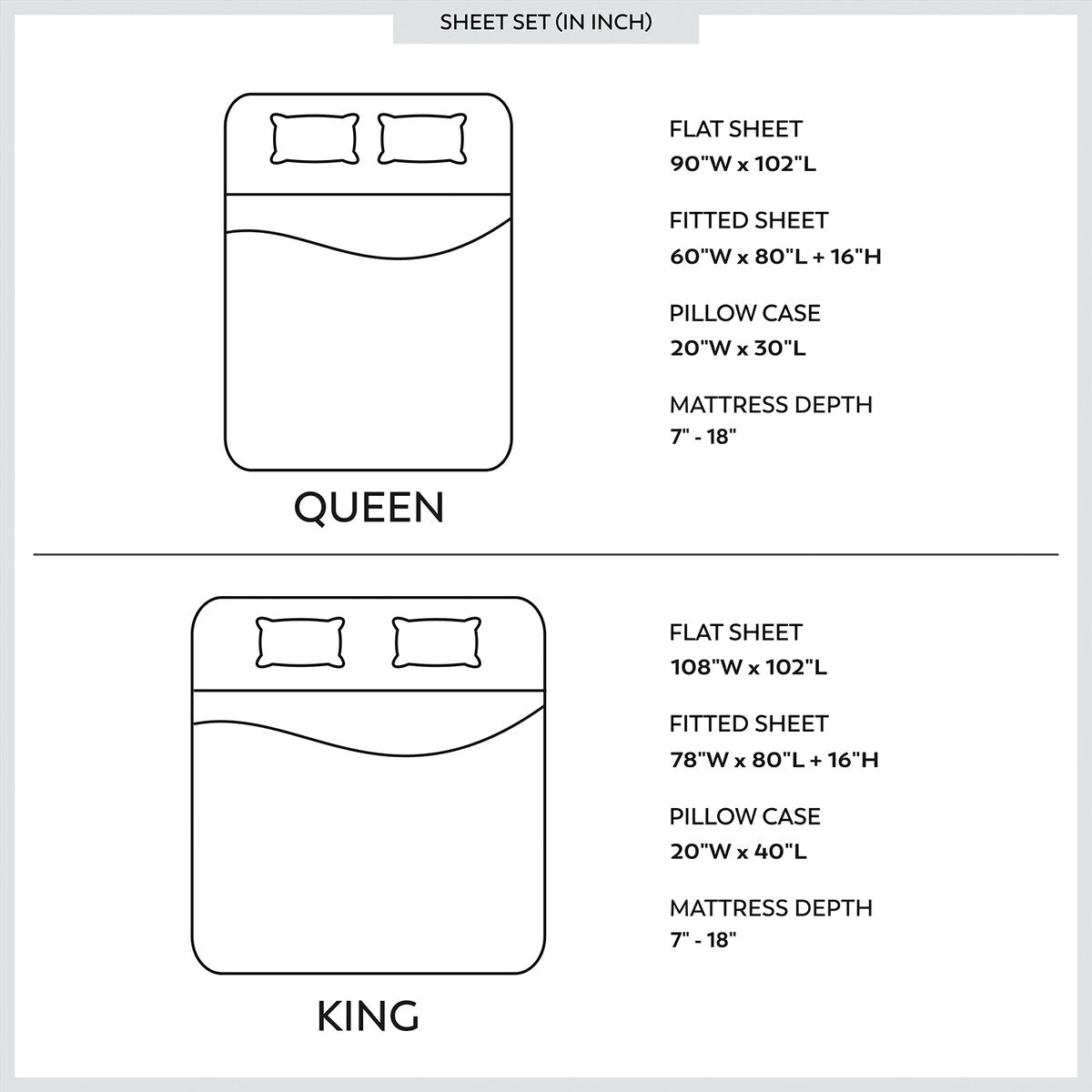 1 Flat sheet: 92 inches wide x 102 inches long