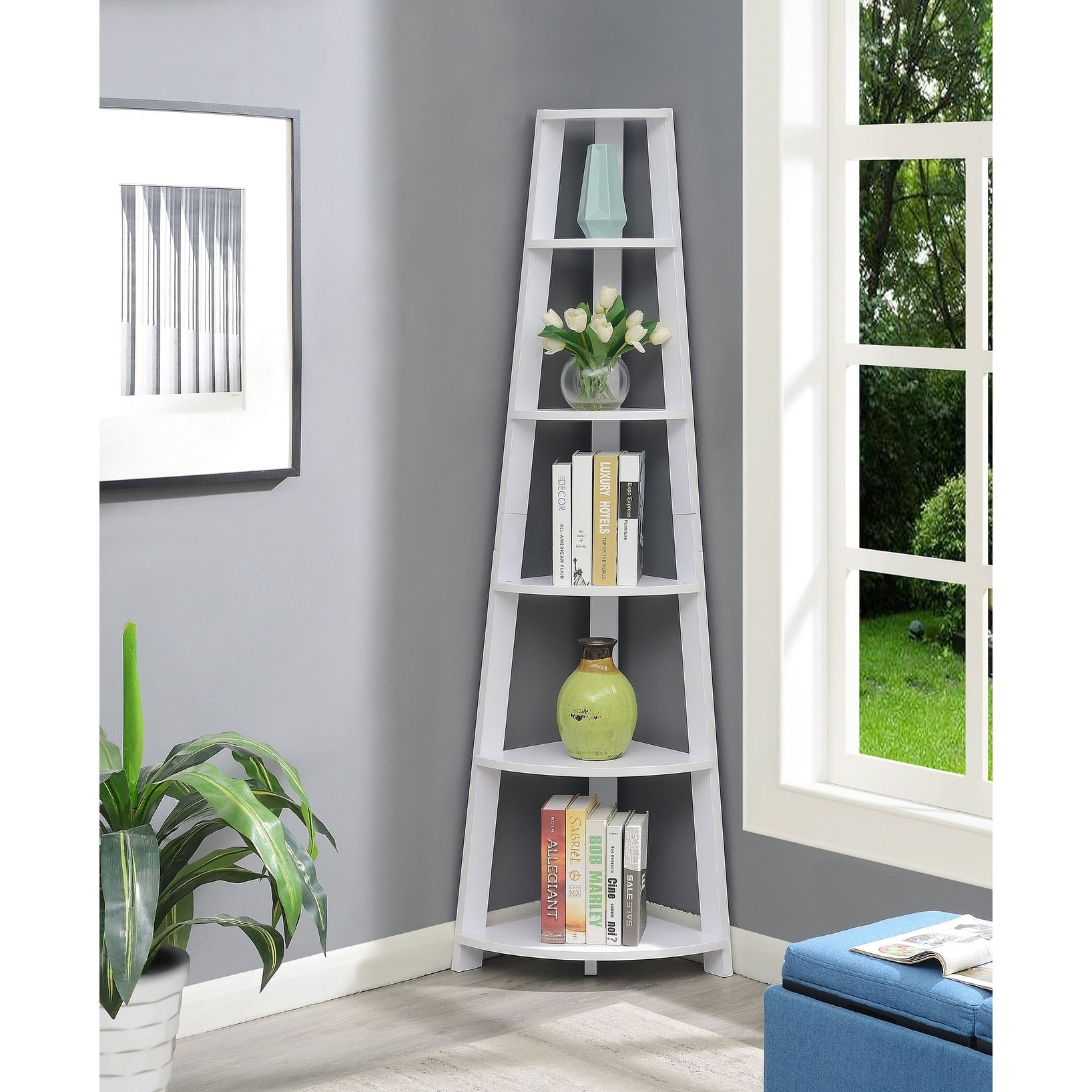 Convenience Concepts Newport 5 Tier Corner Bookshelf