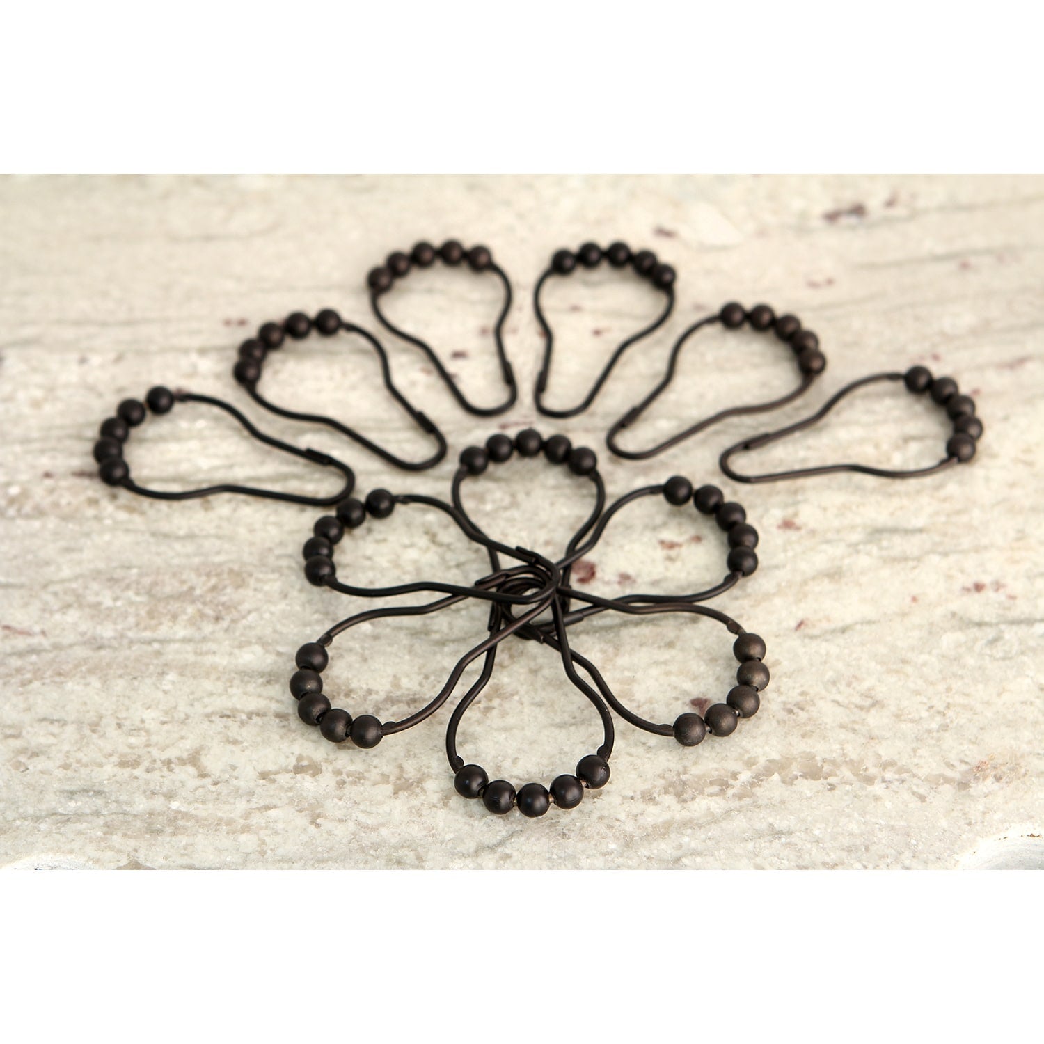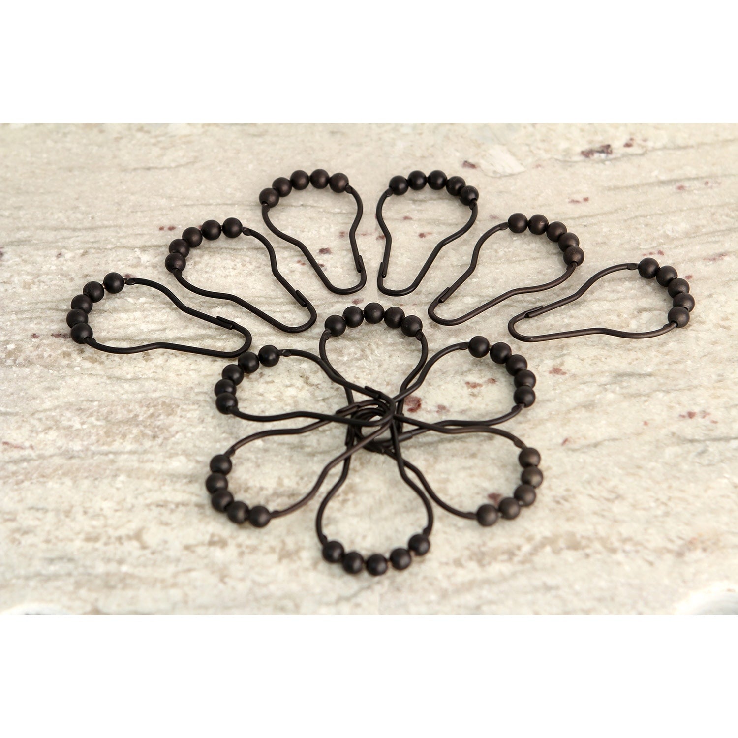 Small changes in your bathroom decor can make a great difference to your bathroom atmosphere. Upgrade your shower experience with the effortless glide of these matte black roller ball shower curtain rings. Made of solid brass, these curtain rings are easily installed onto your existing shower curtain rod. 12 pieces are included in each set.