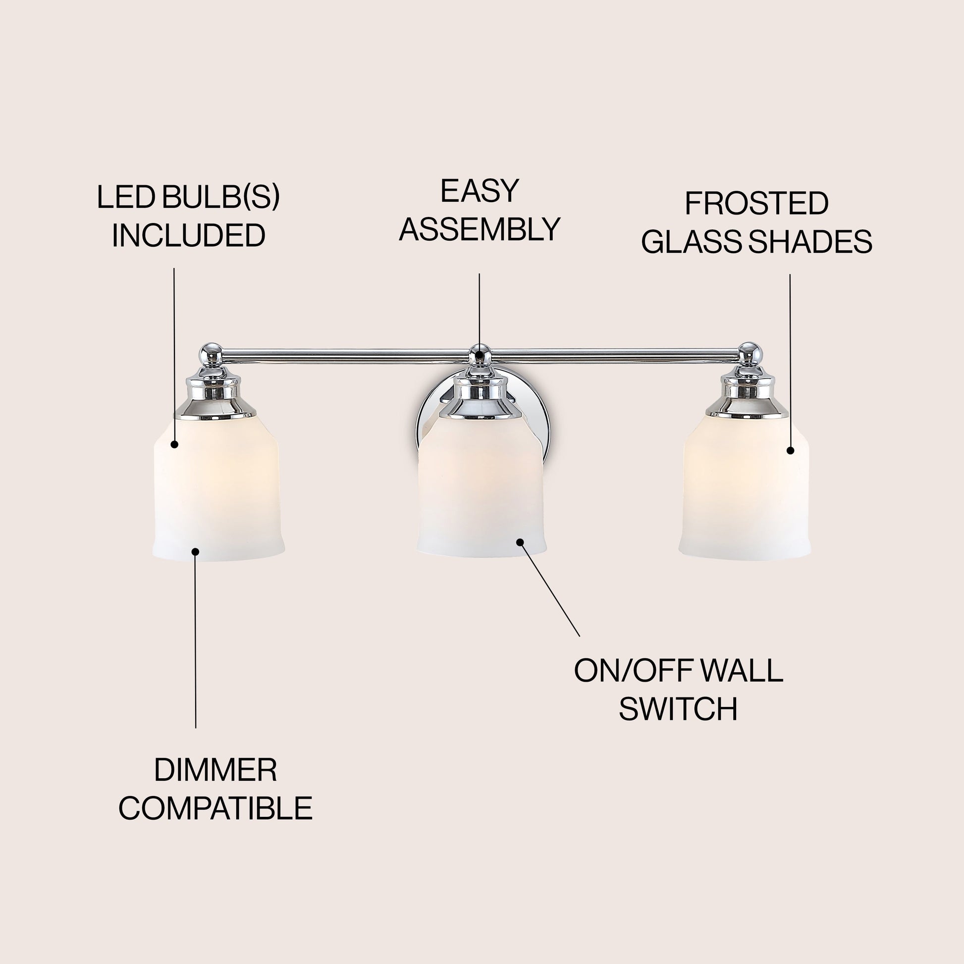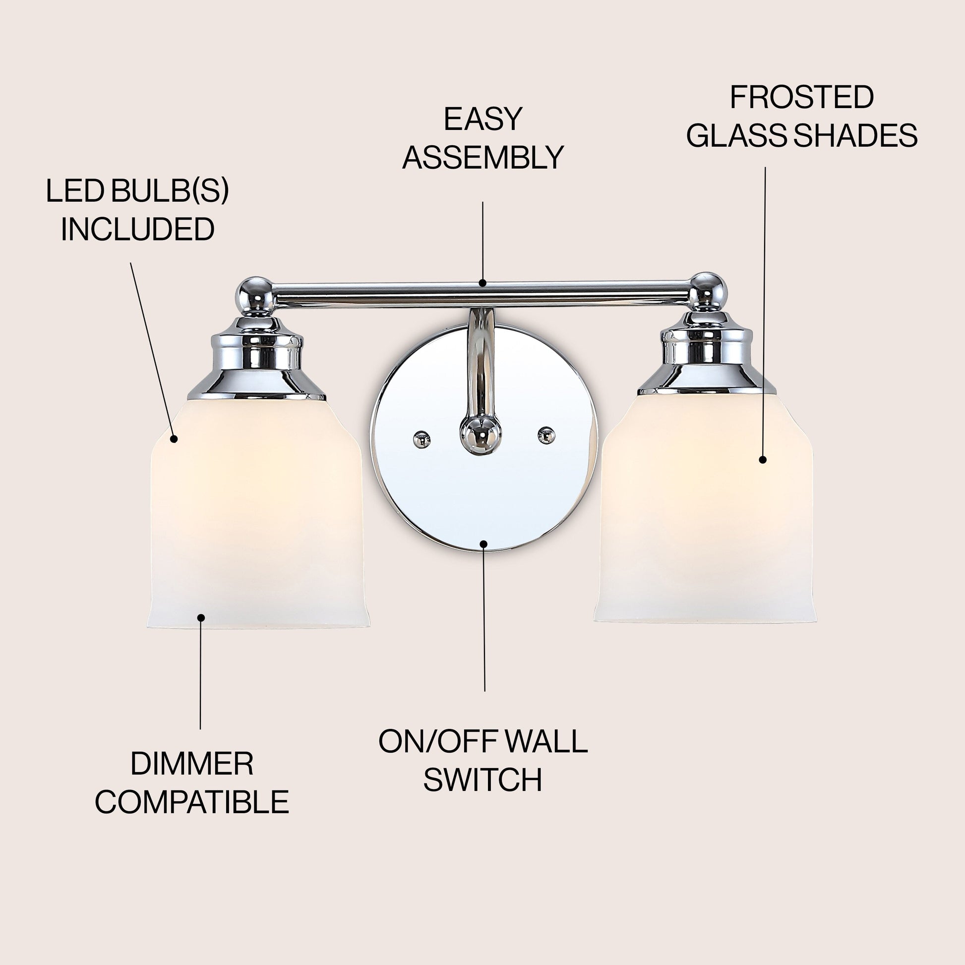 Jayne Iron/Frosted Glass Farmhouse Cottage LED Vanity Light,...
