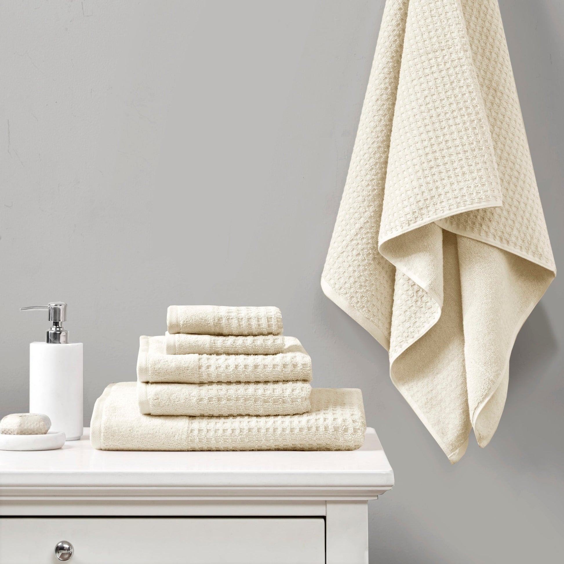 Madison Park Spa Waffle Cotton Waffle Jacquard Antimicrobial...