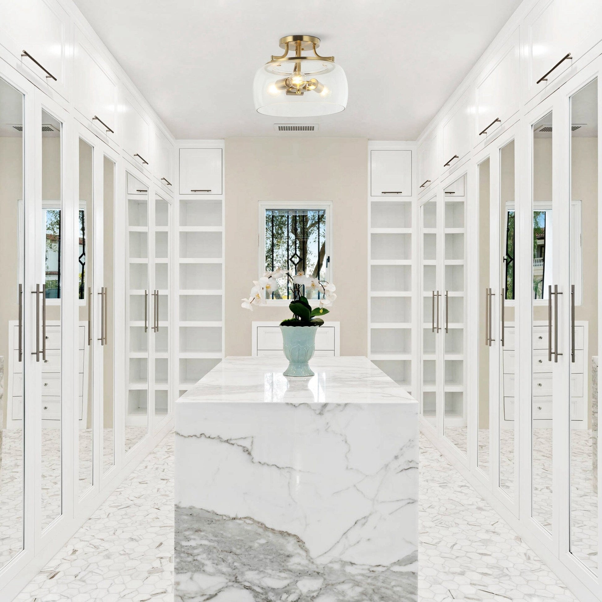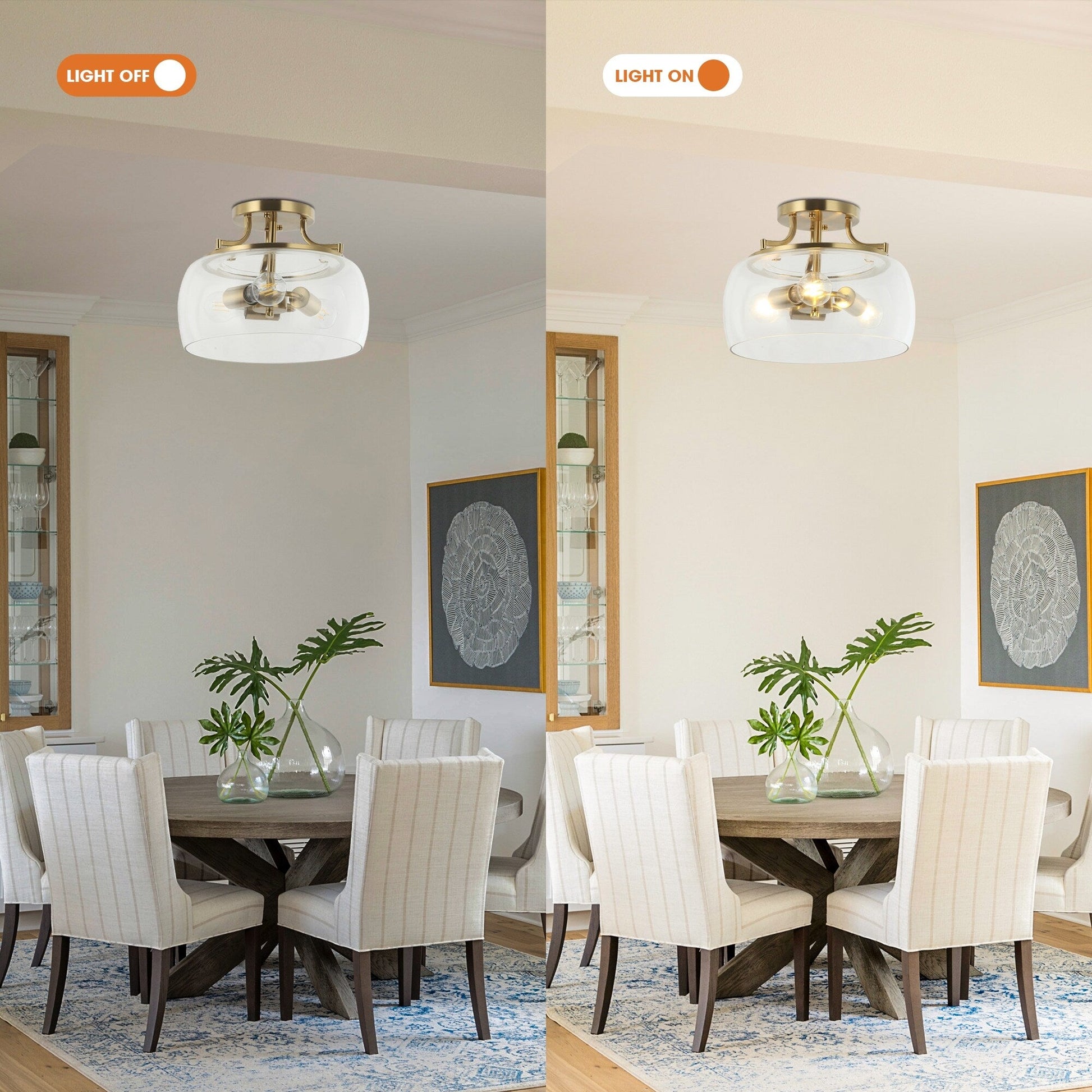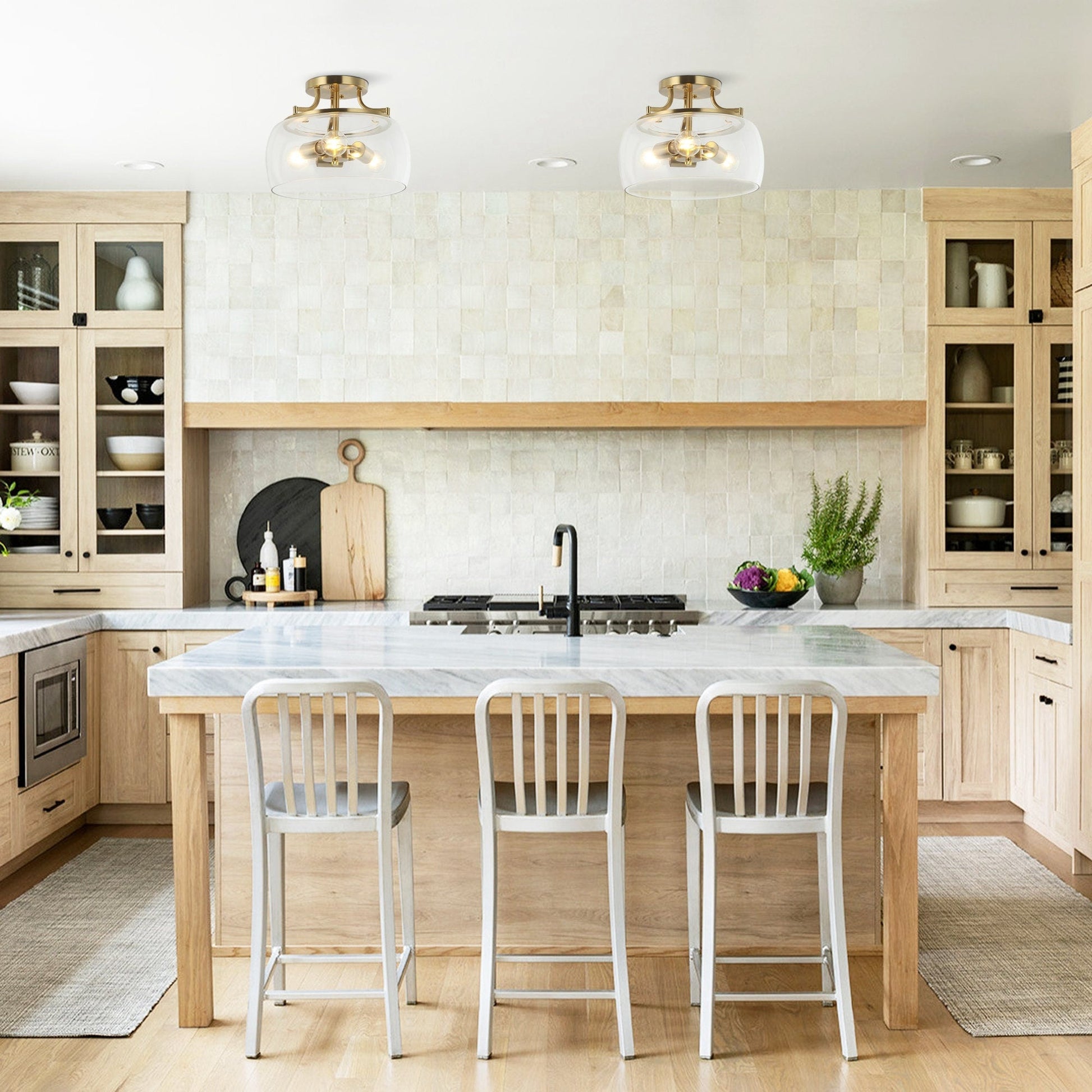 Modern Gold 3-Light Glass Semi Flush Mount Fixture...