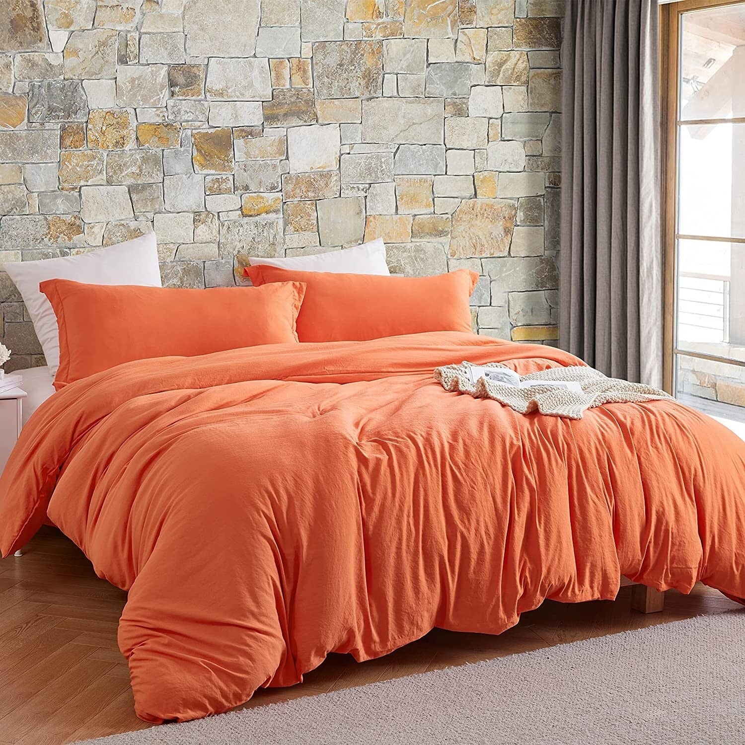 Experience the ultimate in King bedding comfort and luxurious softness with our Natural Loft King Solid Duvet Cover Set. We used oversized King bedding dimensions to help this King XL duvet cover fit extra large King comforters or thick comforters. Made from insanely soft pre-washed microfiber, this oversized King duvet cover provides the softness and comfort you deserve. This soft microfiber is also used to create the included King pillow shams, so you can fully surround yourself in soft microfiber comfort. Best of all, you can choose the perfect color for your bedroom decor! Whether you want black, off-white, green, pink, or even orange bedding, we have you covered! The extra large King duvet cover also features simple button closures, making it easy to take on and off for effortless laundering. Elevate your sleeping experience and upgrade your bedroom decor with this premium XL King duvet cover set.