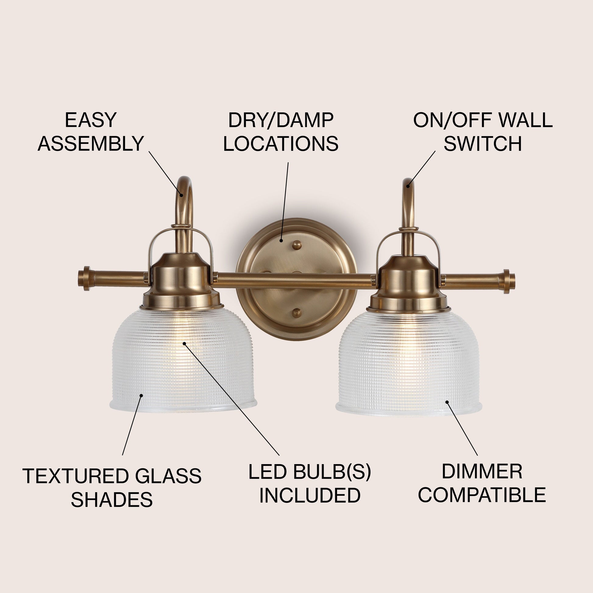 Shirley Metal/Glass LED Vanity Light, by JONATHAN Y