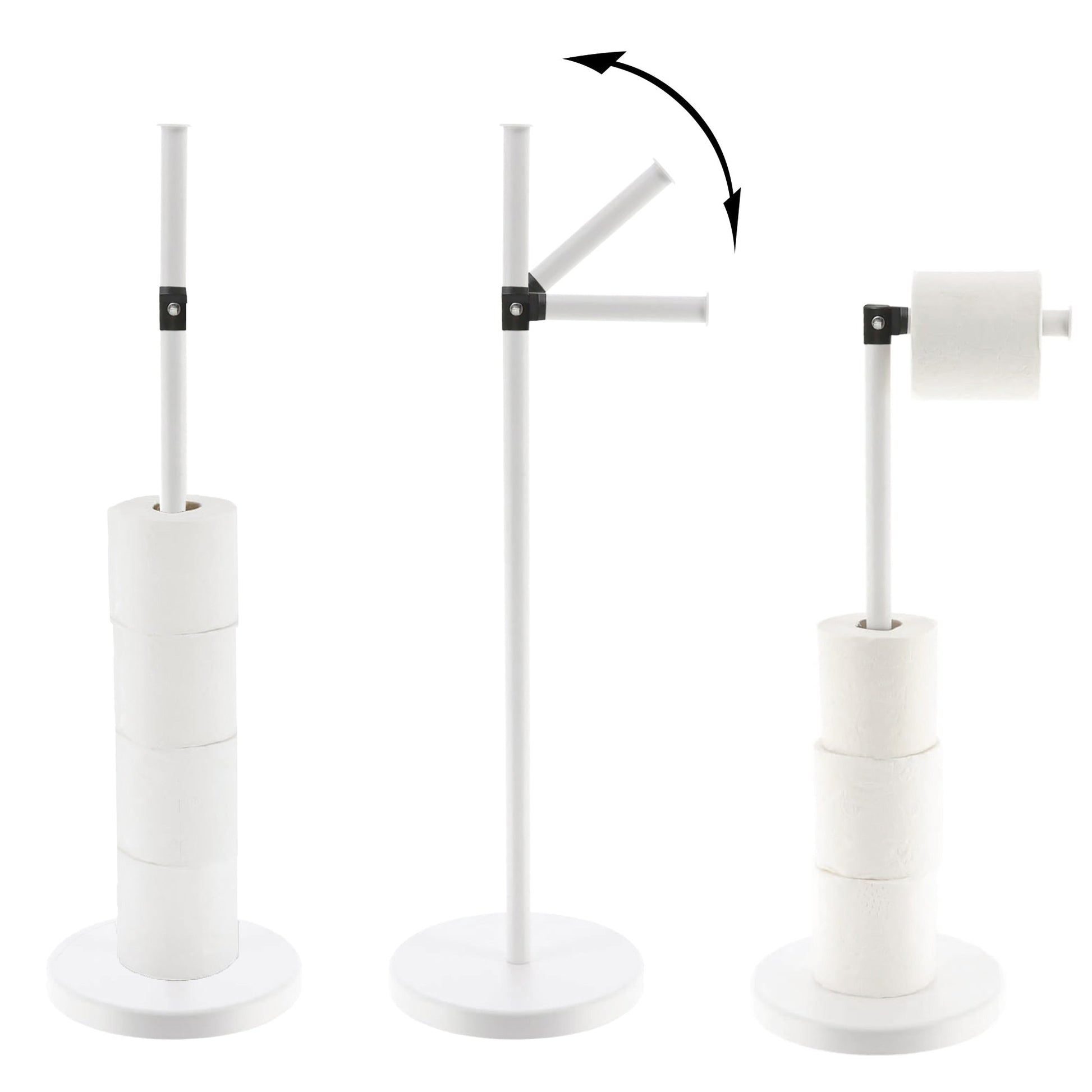 Our freestanding metal reserve and toilet paper holder with folding arm is the perfect addition to your bathroom. Constructed with sturdy and durable metal, this holder can hold multiple rolls of toilet paper at once and includes a folding arm for easy dispensing. Its compact and space-saving design allows it to fit seamlessly into any bathroom decor, while the lightweight and portable construction makes it easy to move and store. Assemble and disassemble with ease and enjoy a practical and stylish solution to your toilet paper needs.