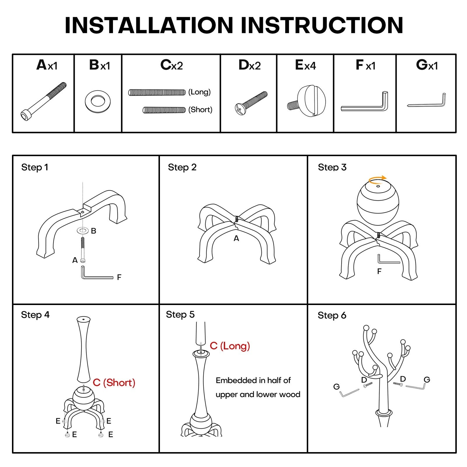 Tree-branch Rubberwood Freestanding Coat Rack with 8 Hooks...