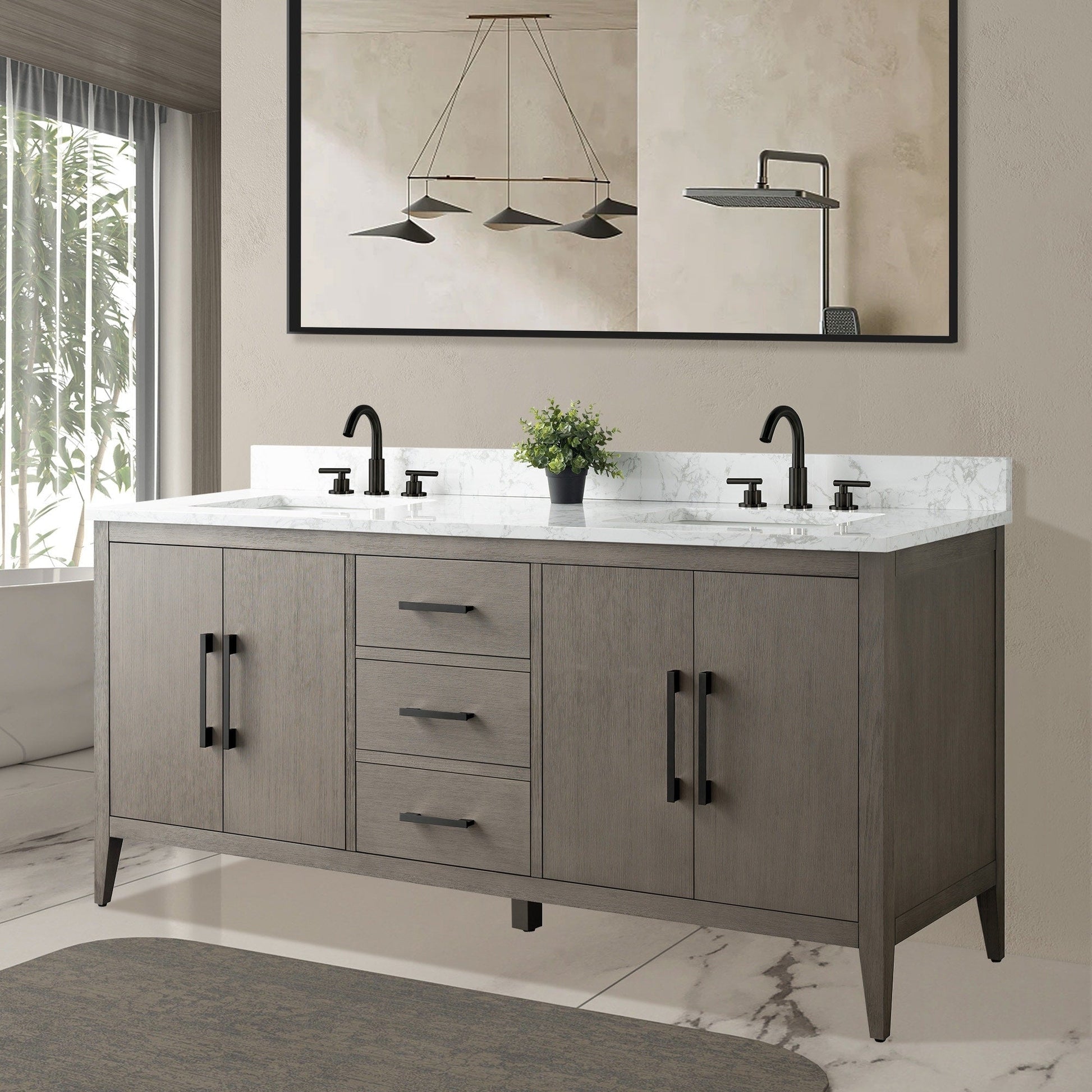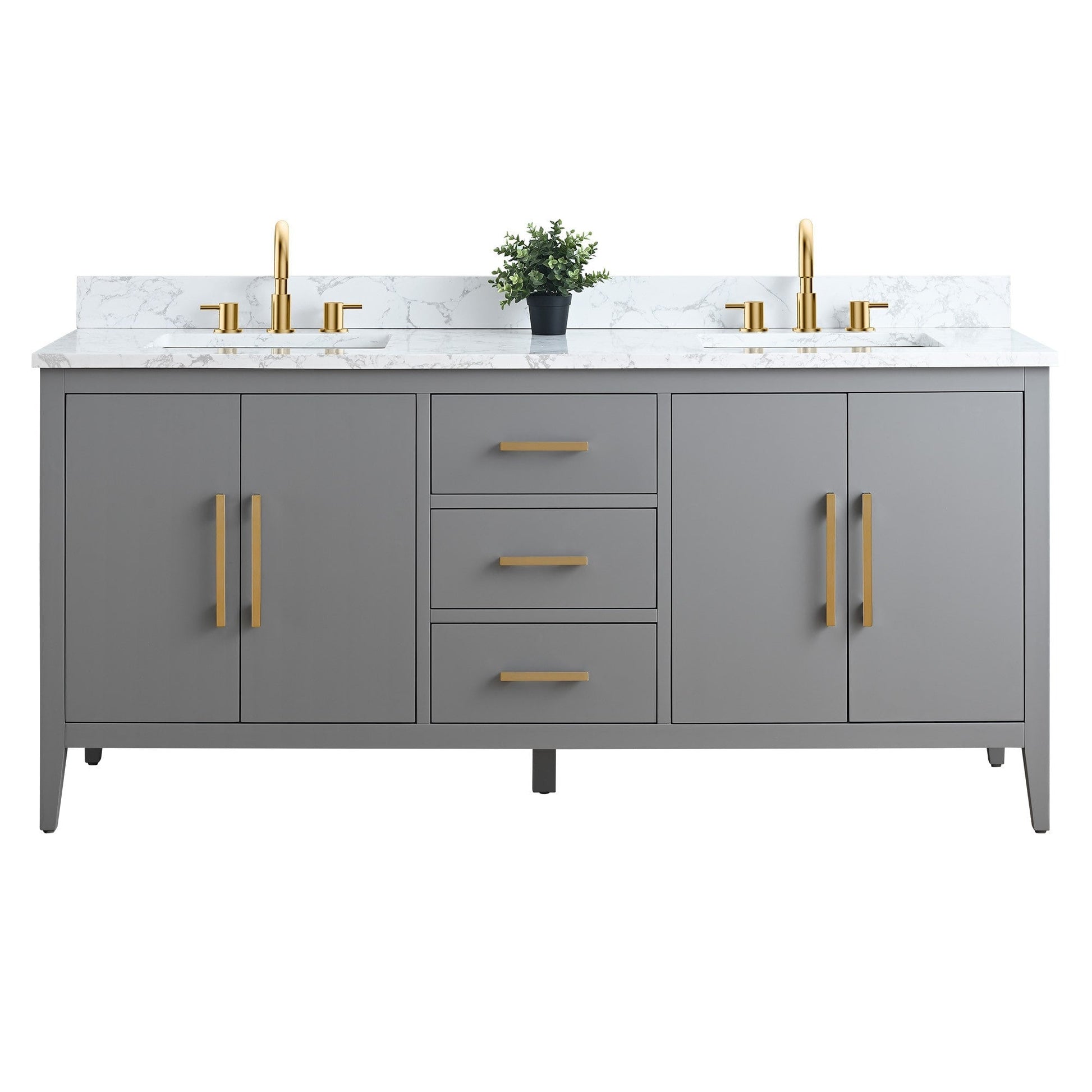 Vanity Art 72 Double Sink Bathroom Vanity Cabinet with Engineered Marble Top
