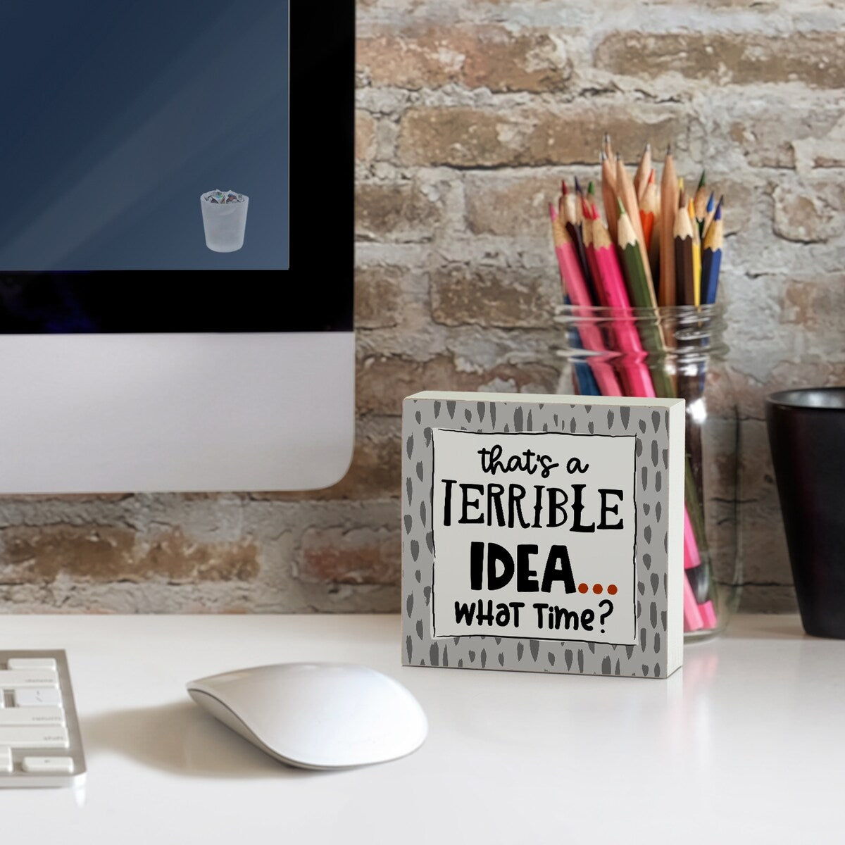 Wood Block Décor Message Terrible Idea Sign, 3.75...